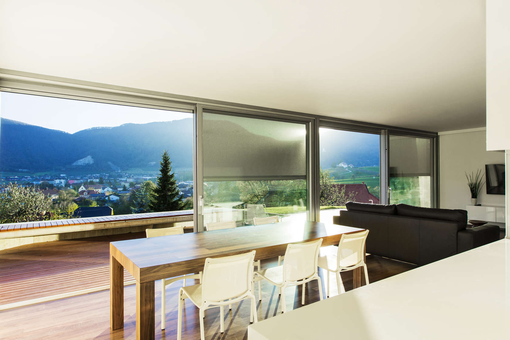 Cesta na terasu je oddelená presklenou stenou, ktorá dokonale vyplní interiér svetlom.
