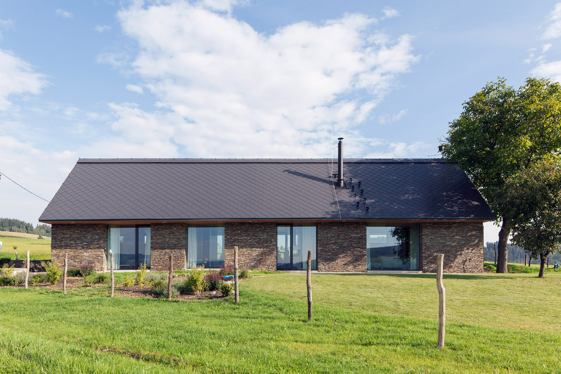 Tvar klasickej stodoly je dnes veľmi obľúbený tvar rodinných domov umiestnených v prírode. V súčasnosti sú veľmi časté rekonštrukcie starých, dokonca historických hospodárskych stavieb, ale zároveň vznikajú stále nové budovy v tomto duchu. Jednou z nich je dom z dielne architektonického štúdia ov-a.