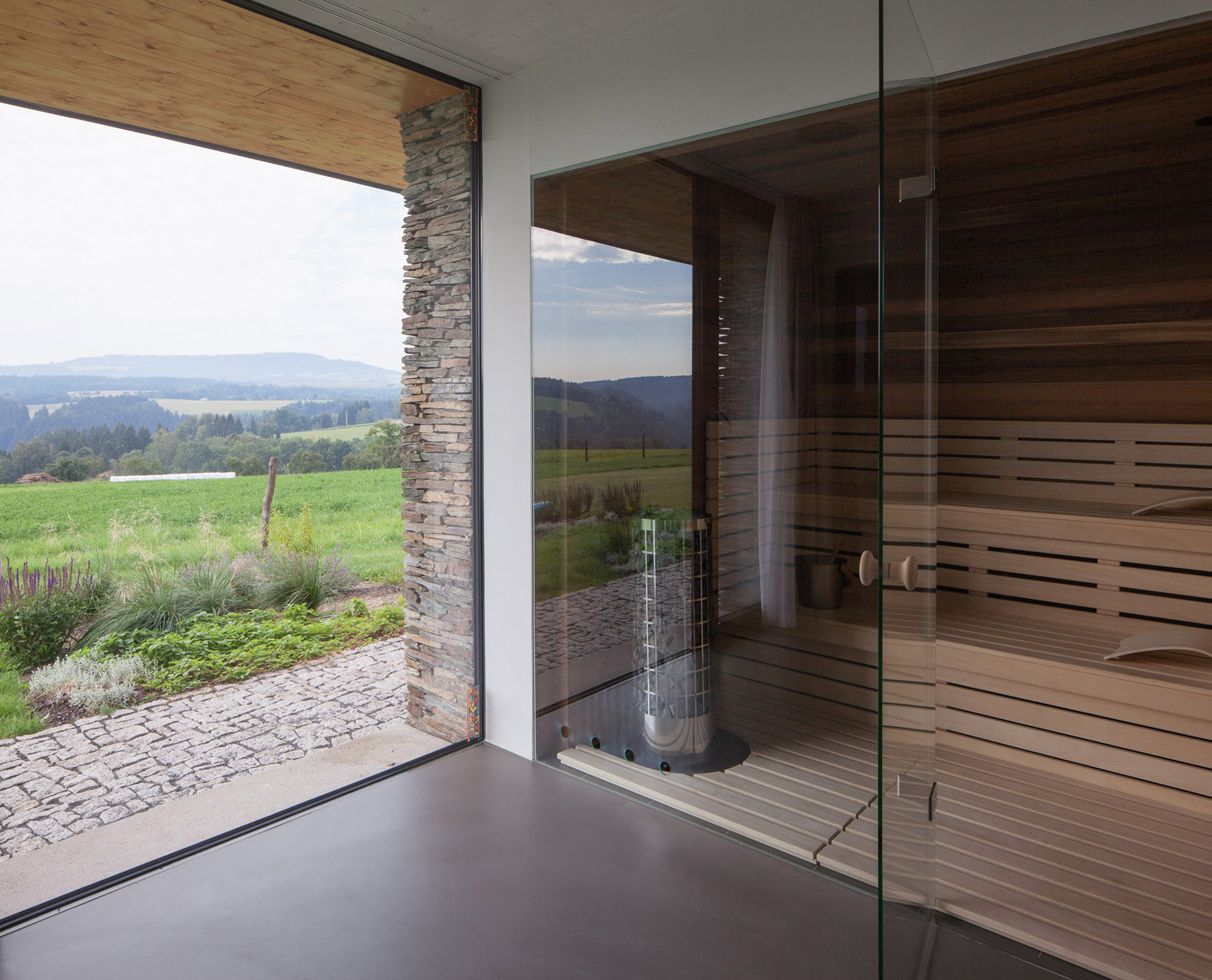 „Priestorový koncept domu je založený na vzťahu uzatvorených súkromných blokov a otvorených častí. Náladou sa stavba približuje pavilónu v otvorenej krajine. Masívne piliere z bridlice sa striedajú s otvorenými priestormi medzi nimi. Konštrukciu strechy tvorí drevený rám v tvare trojuholníka,“ charakterizujú svoje dielo autori projektu Jiří Opočenský a Štěpán Valouch.
