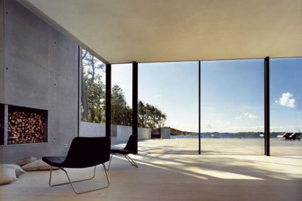 Od susedov do vily nie je vidieť – na bočných stenách nie sú okná. Všetky miestnosti sú orientované na juhozápad k moru. Morská krajina je dosť členitá a pripomína jazero, pretože šíry horizont zacláňa okolo desať ostrovov. Prvé dva – nepomenované – sú celkom blízko brehu; trochu ďalej od nich, ale stále vo vzdialenosti do 500 metrov je severnejší Saskar, južnejšie je Bastholmen.