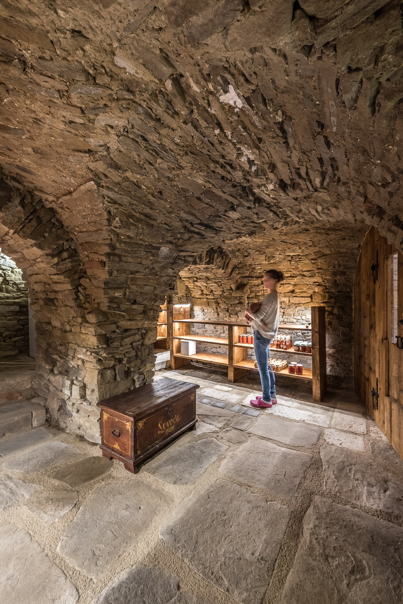 Bolo by absurdné takýto historický dom ponechať bez artefaktov z jeho minulosti. „To, čo sa dalo použiť, našlo v dome svoje uplatnenie. Kamenné múry a klenbové konštrukcie v suteréne boli vyčistené a vypieskované, kamenný nápis jedného z pôvodných majiteľov našiel svoje nové miesto v intarzii do štukovej steny v kuchyni, časti pôvodných drevených trámov krovovej konštrukcie zasa poslúžili ako „nosiče“ osvetlenia v pivničných klenbových priestoroch či ako súčasť vonkajšej časti kozubového telesa v obývacej miestnosti.