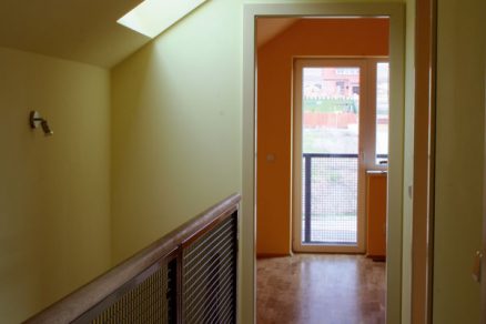 Tepelná izolácia na stropoch zároveň zaručuje dobrú zvukovú izoláciu – nepočuť kroky ani iný hluk z poschodia. Krátko k skladbe stropov a podláh: nosná konštrukcia je z betónu, na nej je polystyrén, OSB doska a nakoniec parkety.