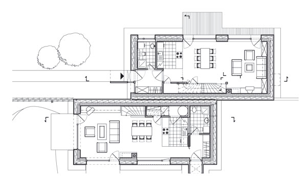 Na týchto dvoch rodinných domoch si chcel staviteľ overiť menej častý typ vnútorných izolácií, vetrania a vykurovania. „Vyskúšali sme tu niektoré veci, o ktorých väčšina investorov vôbec neuvažuje, napr. rekuperačnú jednotku so zemným registrom,“ hovorí. Stavbe sa venoval do všetkých detailov. Jeho zámerom bolo postaviť dva pomerne lacné domy, ktoré by sa svojimi parametrami priblížili stavbám s pasívnym spôsobom vykurovania, čiže s minimálnou spotrebou energie.