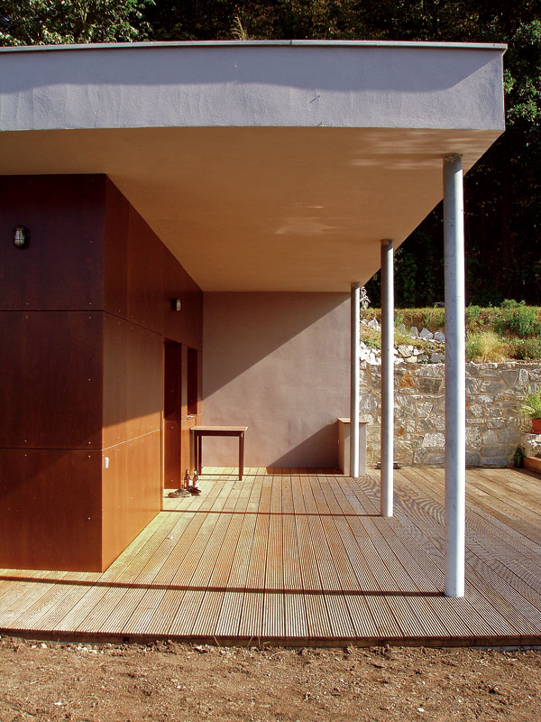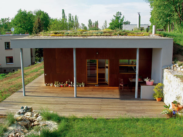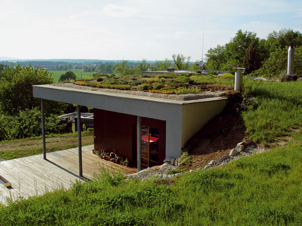 Tieto skutočnosti dali podobe domu jasný rámec. Jednopodlažný nepodpivničený dom s pozdĺžnou osou orientovanou severo-južným smerom je osadený v terénnom záreze vo svahu, ktorý plynule prechádza do zelenej strechy s extenzívnym porastom.
