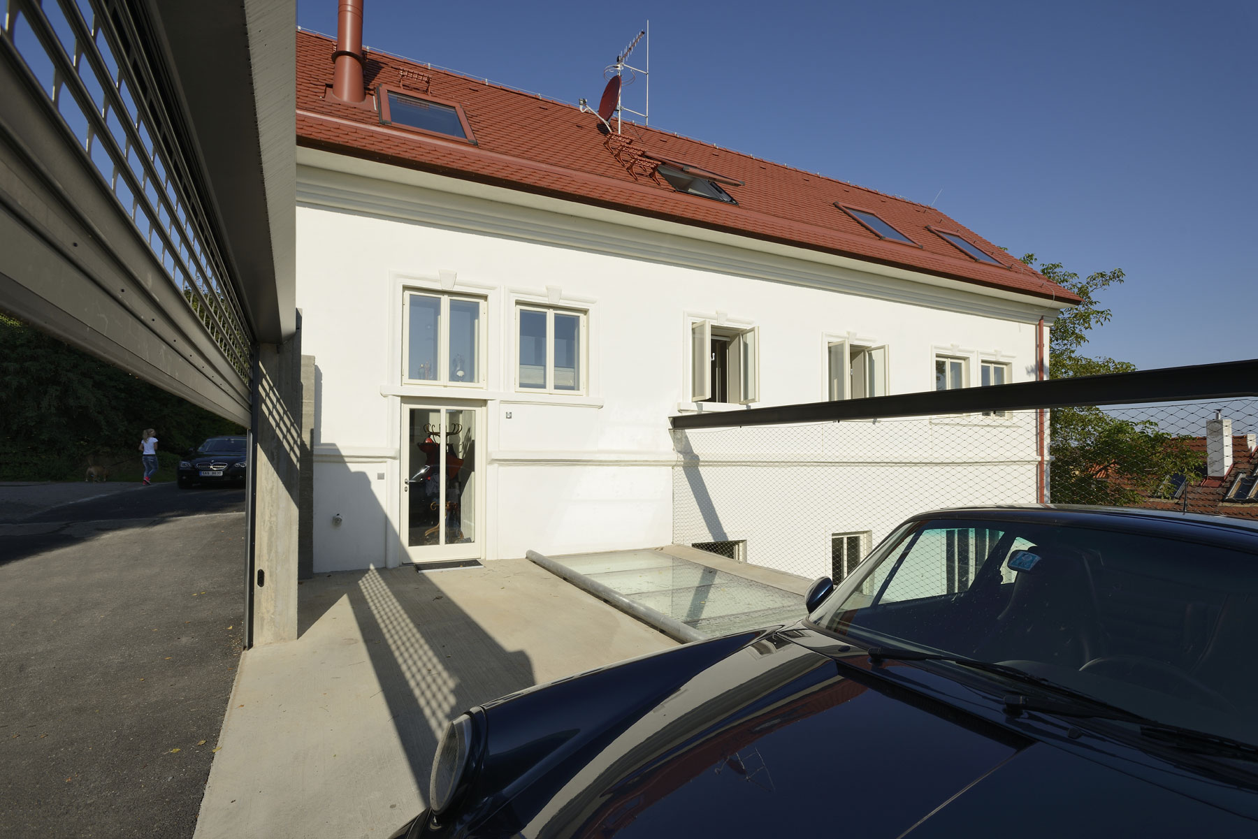 Pôvodný dom bol postavený na počiatku 19. storočia, ďalšia dostavba prebehla v dvadsiatych rokoch 20. storočia navýšením budovy o ďalšie poschodie a krov. Os hrebeňa strechy je orientovaná severojužným smerom. Zámerom architektonického konceptu bolo vhodné a citlivé zasadenie novostavby do charakteristickej zóny s pomerne hustou formou zástavby, ale s drobnou mierkou jednotlivých stavieb. Výsledkom sa stala homogénna trojpodlažná budova vstavaná dovnútra historického objektu s navýšením strechy, s prístavbou pozdĺž ulice, so znížením dvornej časti a odizolovaním proti vode.