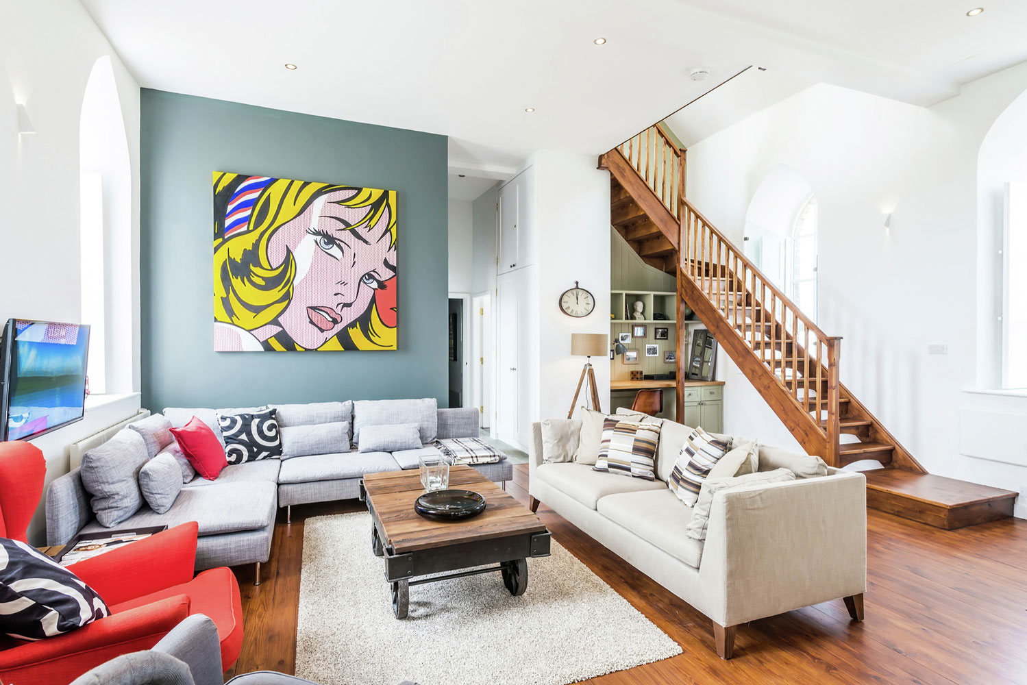 Interiér je ladený v sviežich bledých odtieňoch, ktoré sa vhodne dopĺňajú s odhaleným drevom, výraznými vzormi a dekoráciami napríklad v podobe čelnej steny kuchyne či vo forme výrazného pop-art obrazu v obývacej časti. Napriek modernému vybaveniu si interiér zachováva svoje historické črty, ktoré sú najviac badateľné na prízemí – jedálenská časť, konferenčný stolík, kúpeľňa, veľké zrkadlo či klavír.