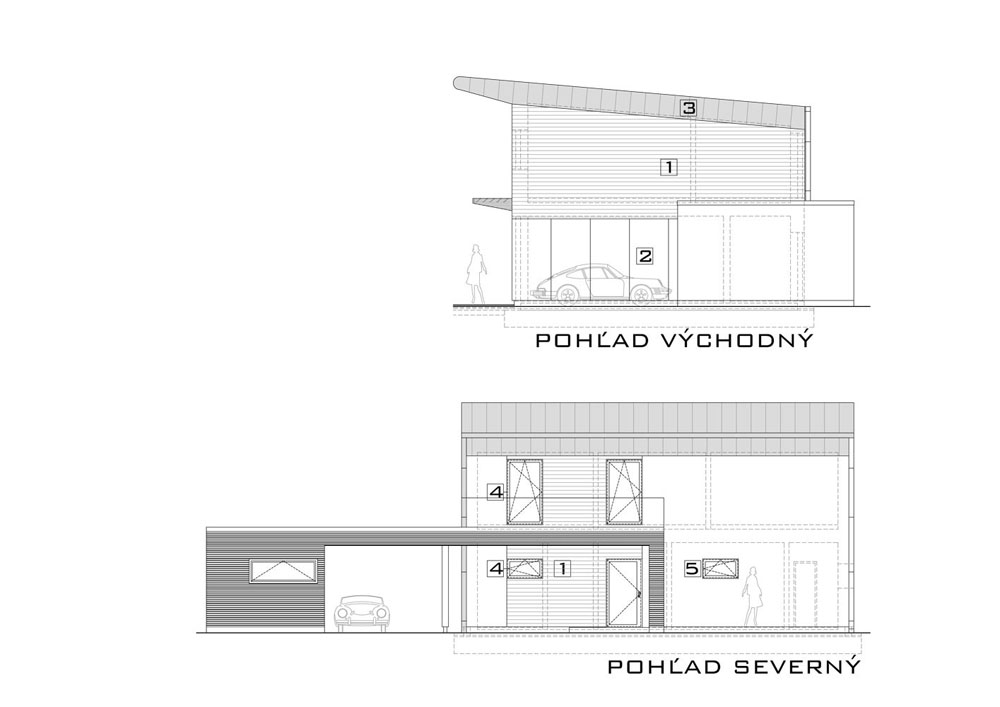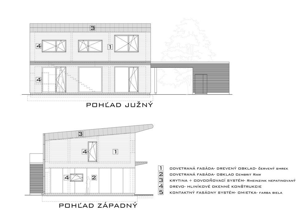 Rodinný dom situovaný v Stupave stojí na pozemku so severo-južnou orientáciou, ktorá je vhodným východiskom na osadenie pasívneho domu. Základ stavby tvorí drôtobetónová doska uložená na izolácii z penového skla. Zvislé konštrukcie a stropy majú materiálovú základňu v drevenej rámovej konštrukcii zo smrekového dreva, ktorú dopĺňajú drevovláknité a drevoštiepkové dosky. Tepelnú izoláciu tvorí fúkaná celulóza. Výzor drevostavby podčiarkuje fasádny obklad z červeného smreka v kombinácii s obkladom Cembrit Raw. Stavba si zachováva „úspornú“ kompaktnú hmotu, ozvláštnenú „futuristickou“ pultovou strechou obloženou krytinou z titánzinku. Farebnosť strechy sa opakuje aj pri voľbe okien, exteriérových lamiel či pri prekrytí terasy. K doplnkovým stavbám patrí prekrytie parkovacieho miesta a prístavba skladového priestoru na pozemku.