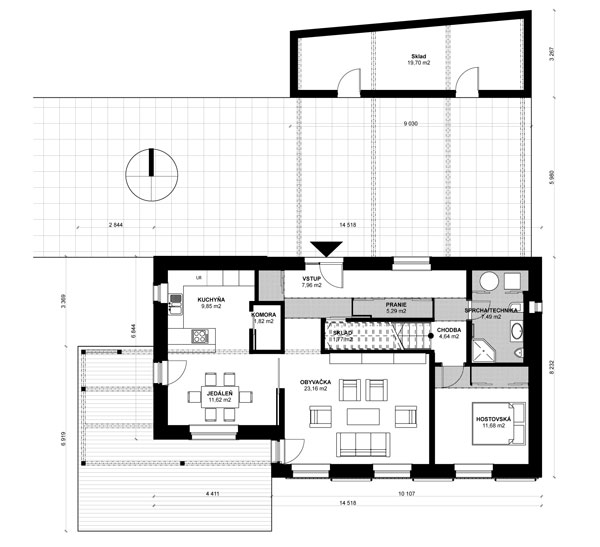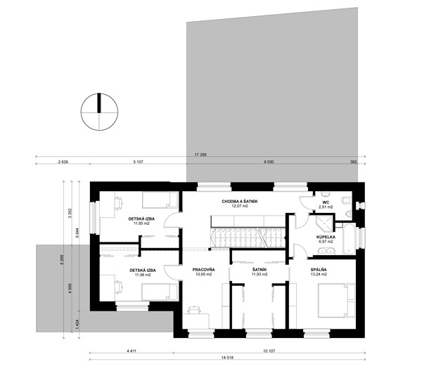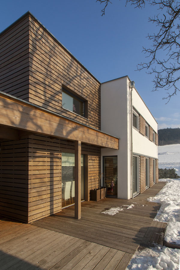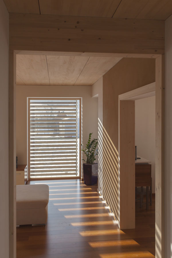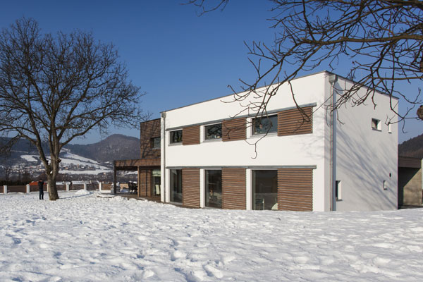 Dom má dokonalú orientáciu – vstup je zo severu, kým obytné časti smerujú na juh. „Určite je vždy dobre vybrať pozemok podľa orientácie. Dobre orientovaný dom je totiž v zime celý deň preslnený. Nevhodná orientácia pridá náklady,“ hovorí autor.