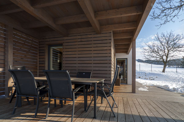 Strechu izoluje expandovaný polystyrén s hrúbkou v priemere 450 mm. Stavba je zakladaná betónovou doskou na lôžku z penového skla s hrúbkou 50 cm.