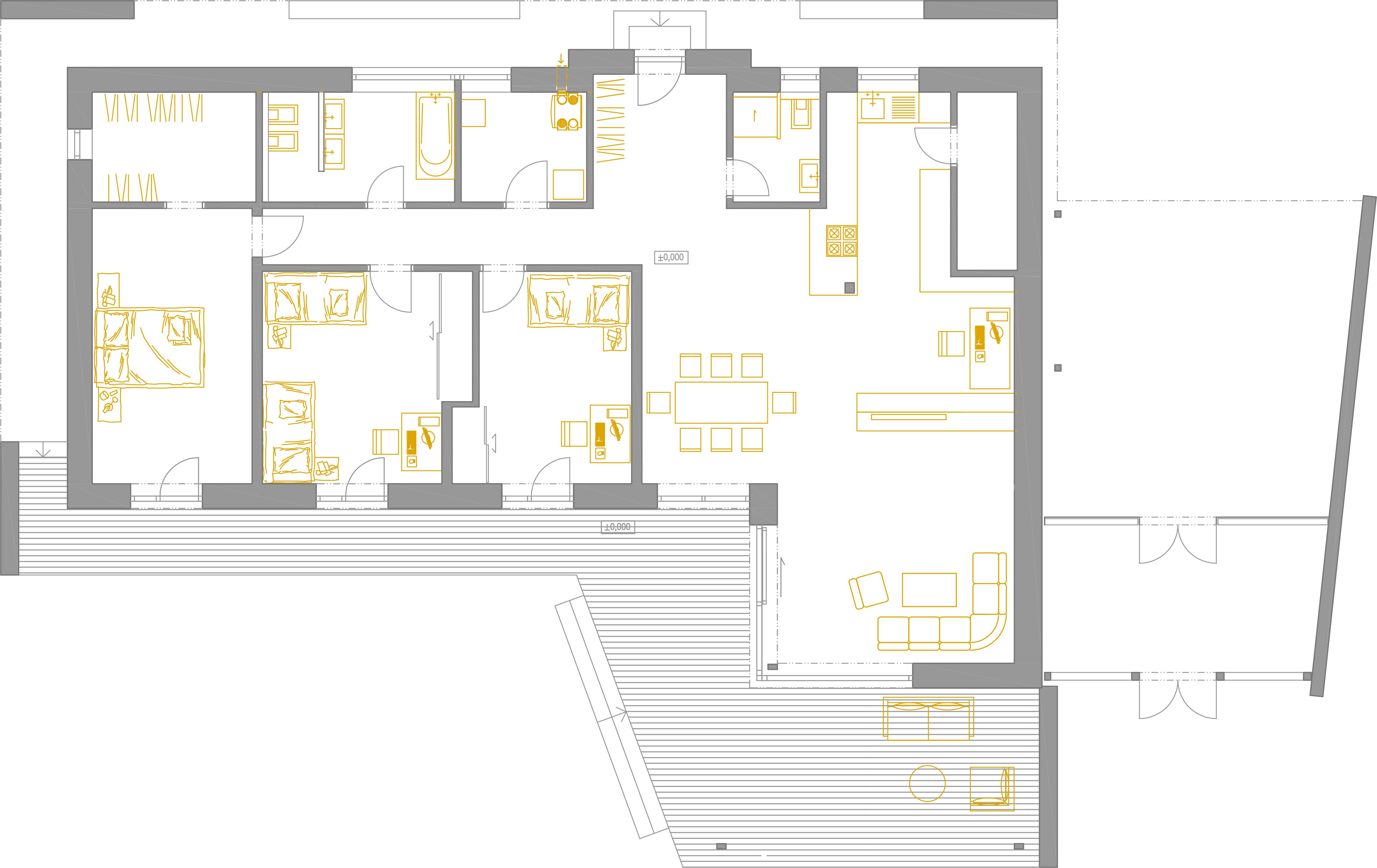 - južná orientácia izieb a terasy, prepojenie domu a záhrady