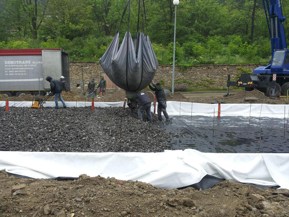- železobetónová doska na zhutnenom lôžku z penového skla a kameniva
