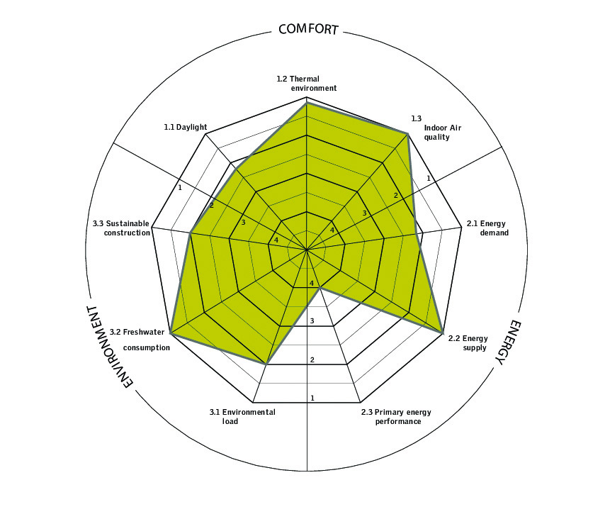 Radarový graf aktívneho domu – energia, pohoda a životné prostredie