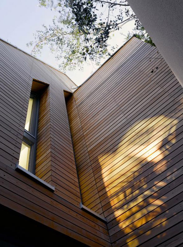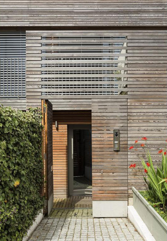 Drevo našlo uplatnenie nielen pri realizácii nosnej rámovej konštrukcie, ale aj na fasáde domu