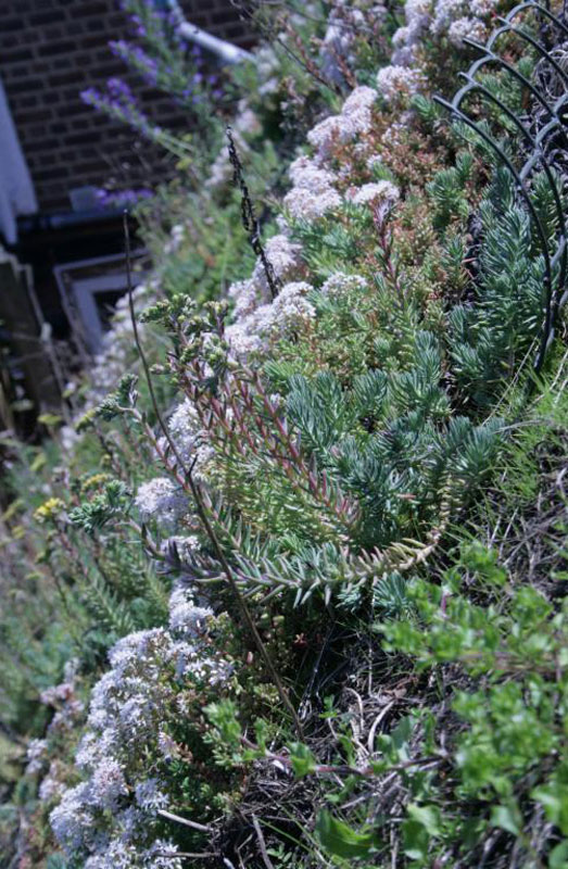 Rodinný dom má dve vegetačné strechy, na ktorých sú vysadené lúčne a divorastúce kvety