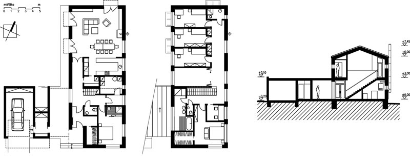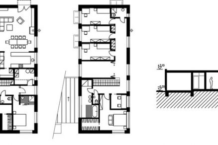 Pôdorysy oboch podlaží rodinného domu a priečny rez