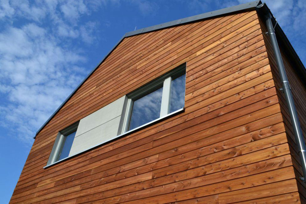 Ekologické zmýšľanie majiteľov domu je vyjadrené dreveným obkladom.