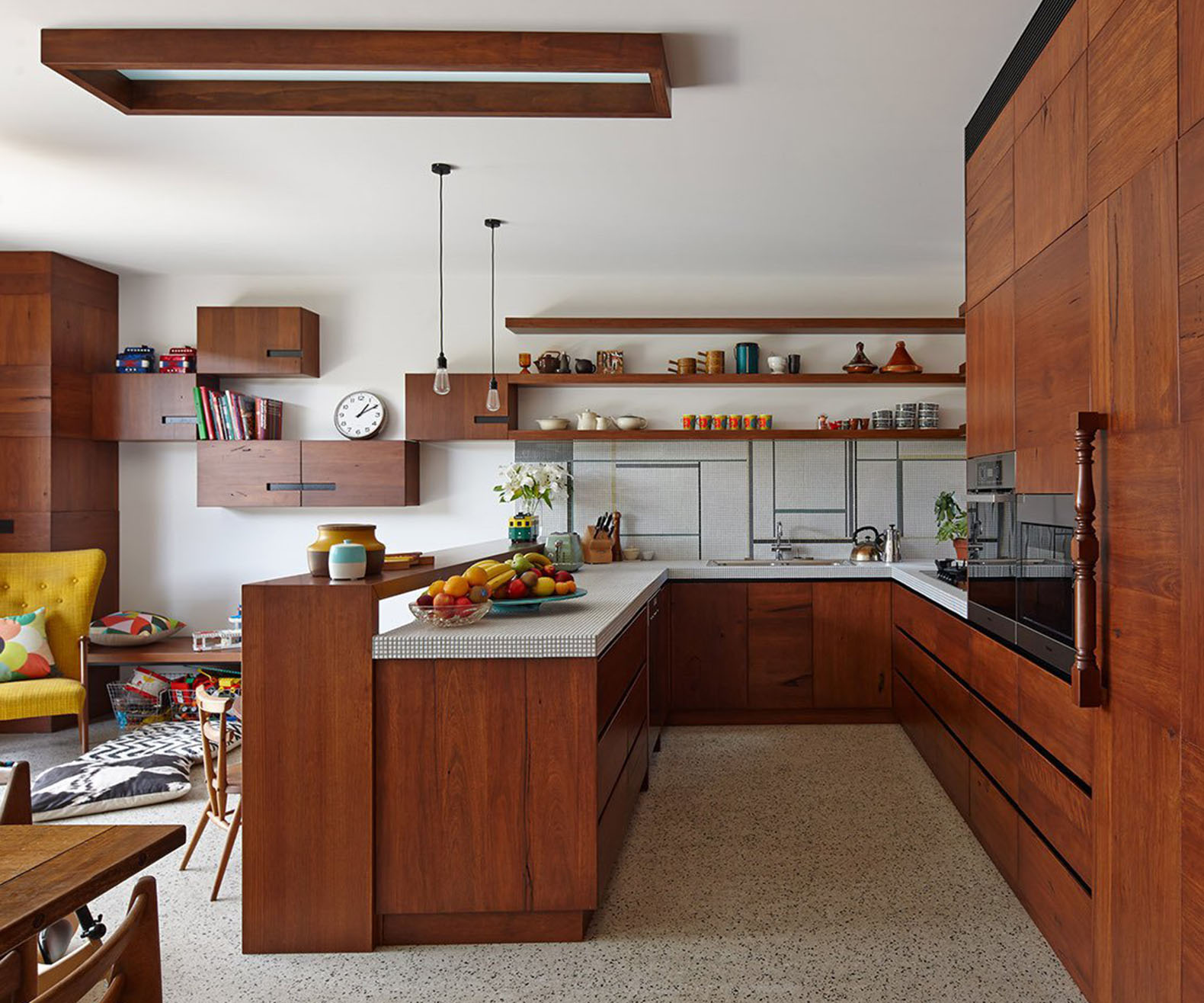 Kuchynský priestor siahajúci hlboko do domu bol presvetlený oknom cez celú stenu.