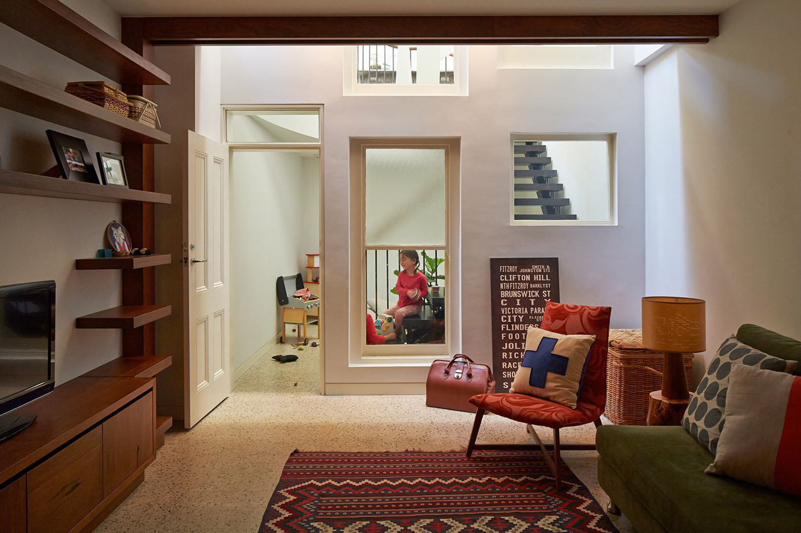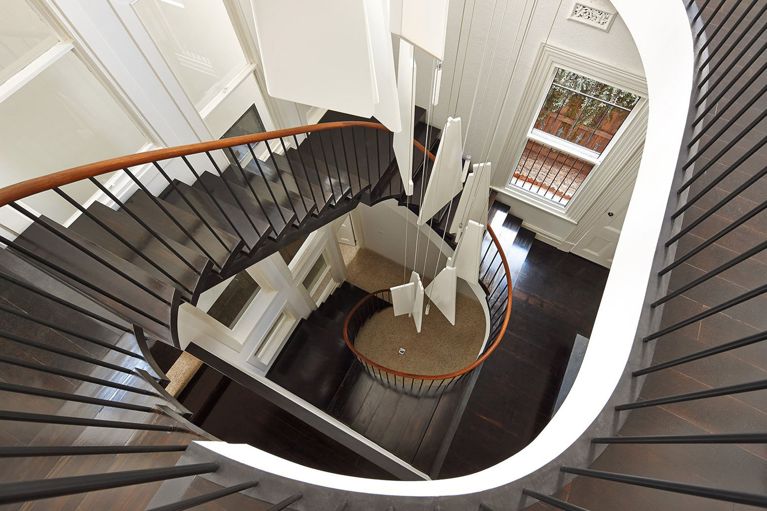 Dom pred rekonštrukciou nebol dostatočne osvetlený. Tento stav zmenila realizácia štedrého točitého schodiska, ktoré prostredníctvom stien s bývalými oknami distribuuje svetlo až do suterénu.