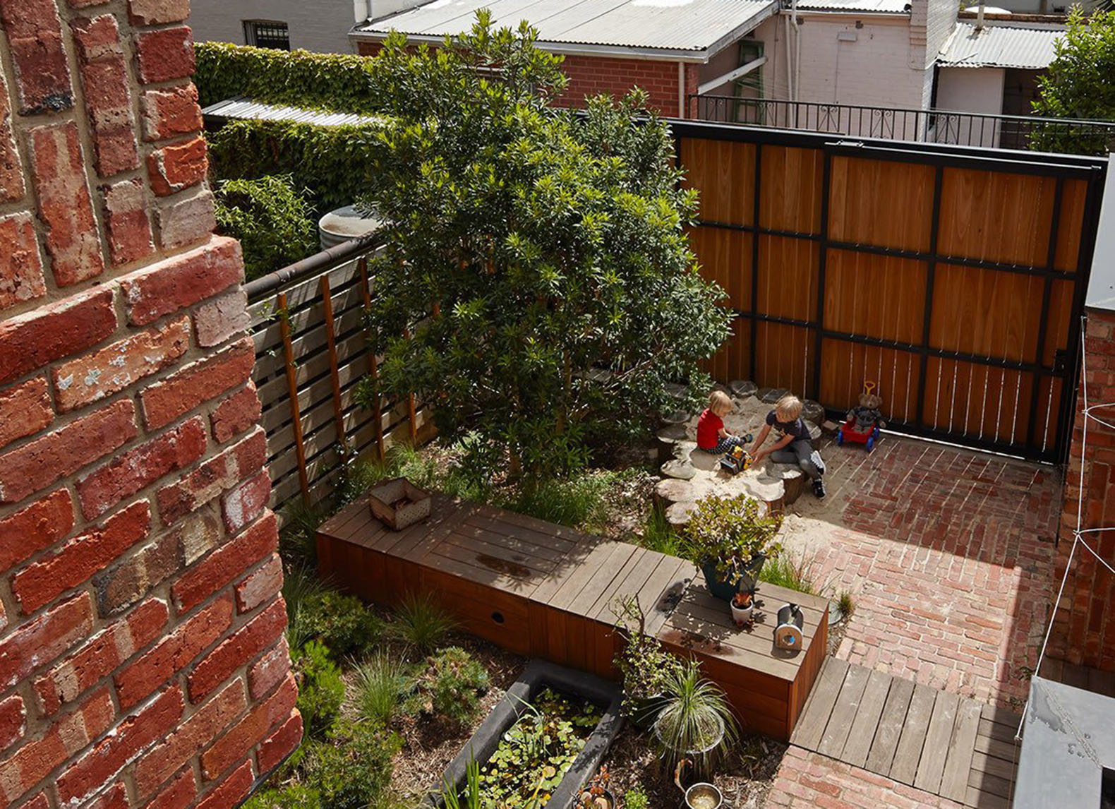 Jednou z podmienok klienta bolo, aby dom fungoval v súlade s trvalou udržateľnosťou. Výnimkou nie je ani záhrada, kde materiál z demolácie našiel široké využitie.