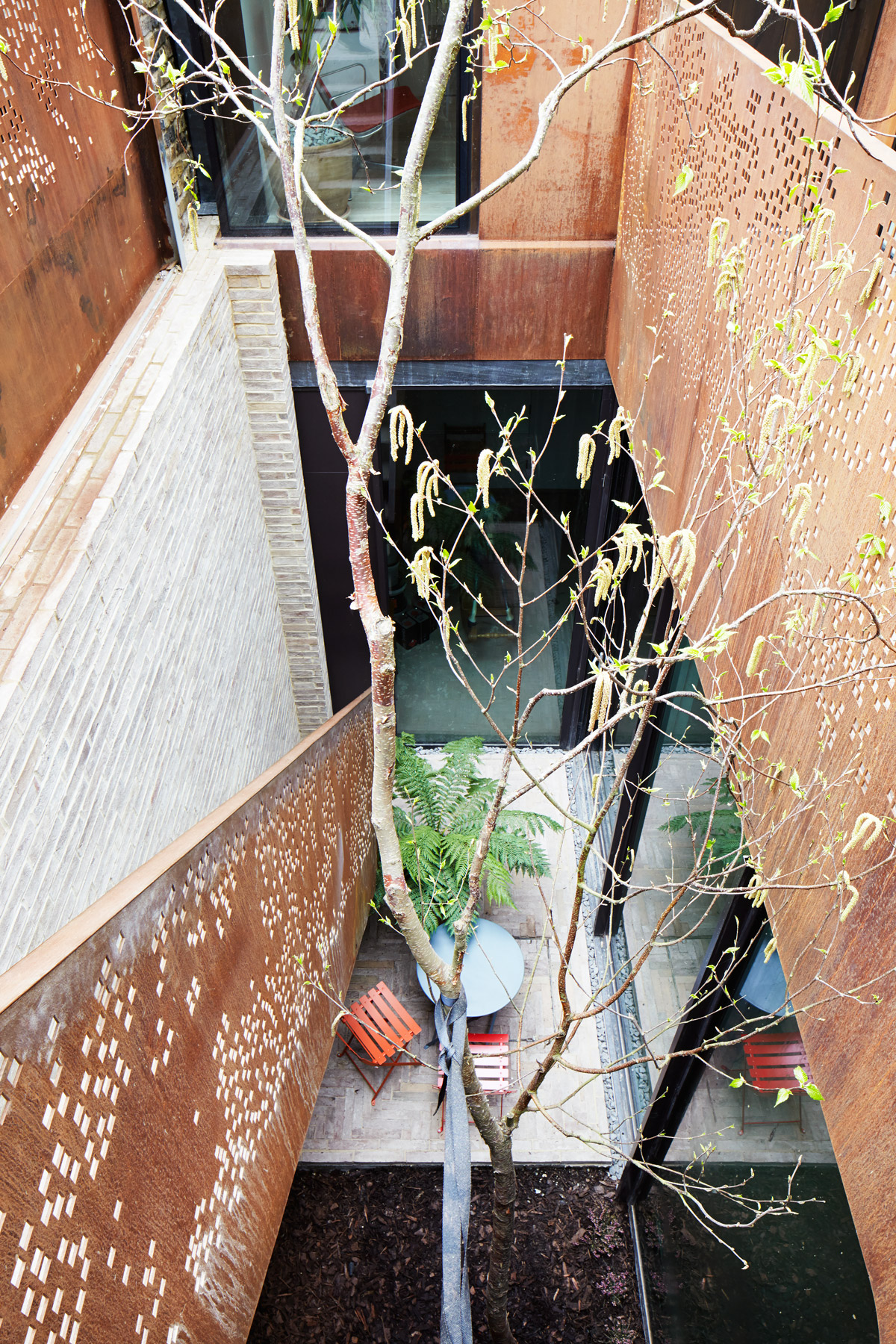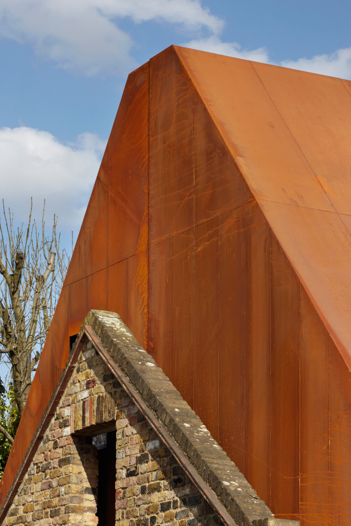 „Tmavé tóny hrdzavej a oranžovej farby korodujúcej ocele a vhodne zvolená perforácia, poskytujúca priestor na svetelnú hru, pripomínajú jesennú paletu, ktorú môžeme vidieť v neďalekých Kew Gardens,“ vyjadril sa architekt Piercy na adresu zvoleného materiálu.