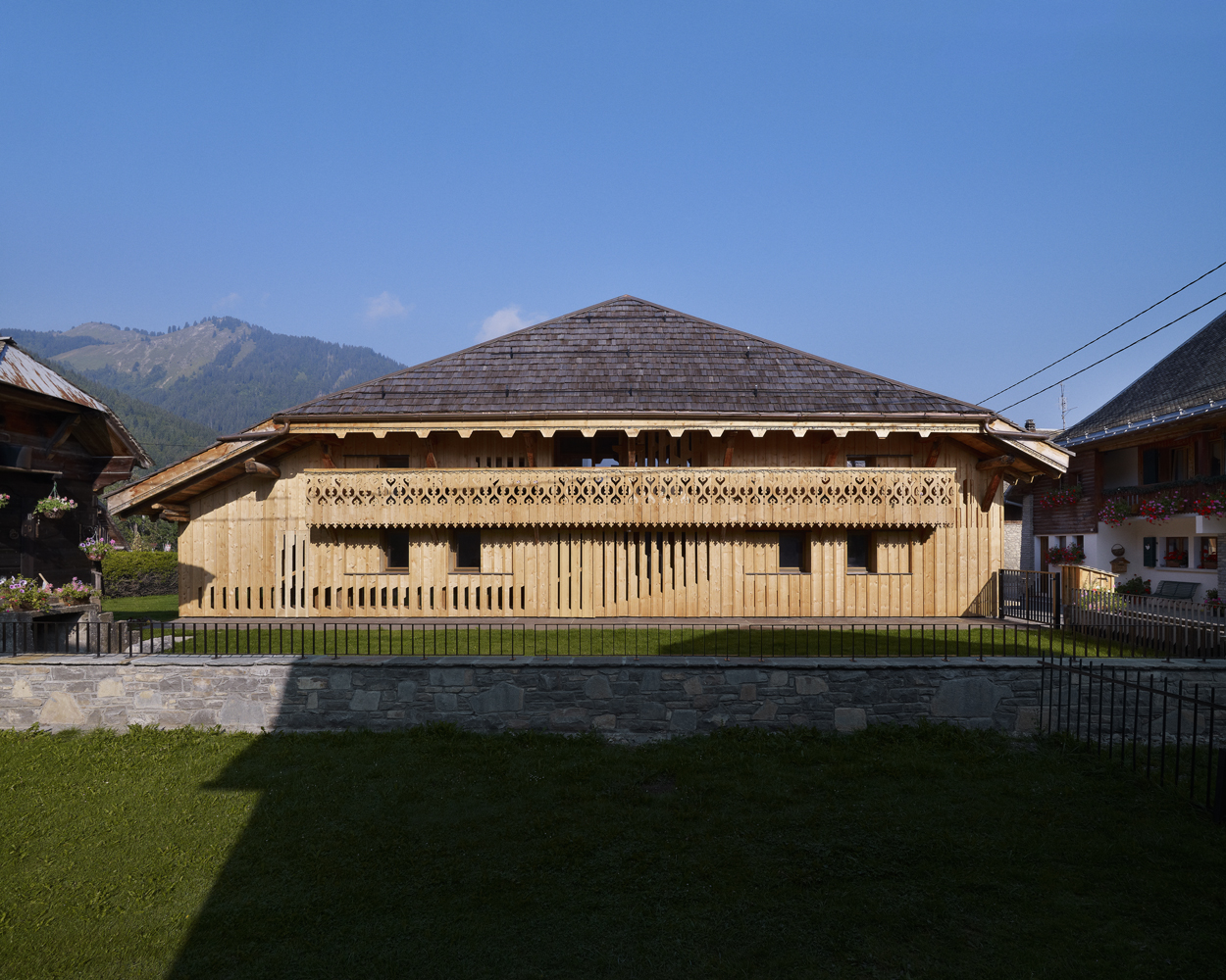 Statok postavili v roku 1826 a nachádza sa v historickej časti francúzskeho mestečka, preto bolo nutné nájsť spôsob, ako dať domu nový výraz a nenarušiť pritom celkový charakter miesta. Architekti sa rozhodli celý objekt obložiť smrekovými latami, ktoré im miestny stolár upravil klasickou technikou dekoratívneho vyrezávania.