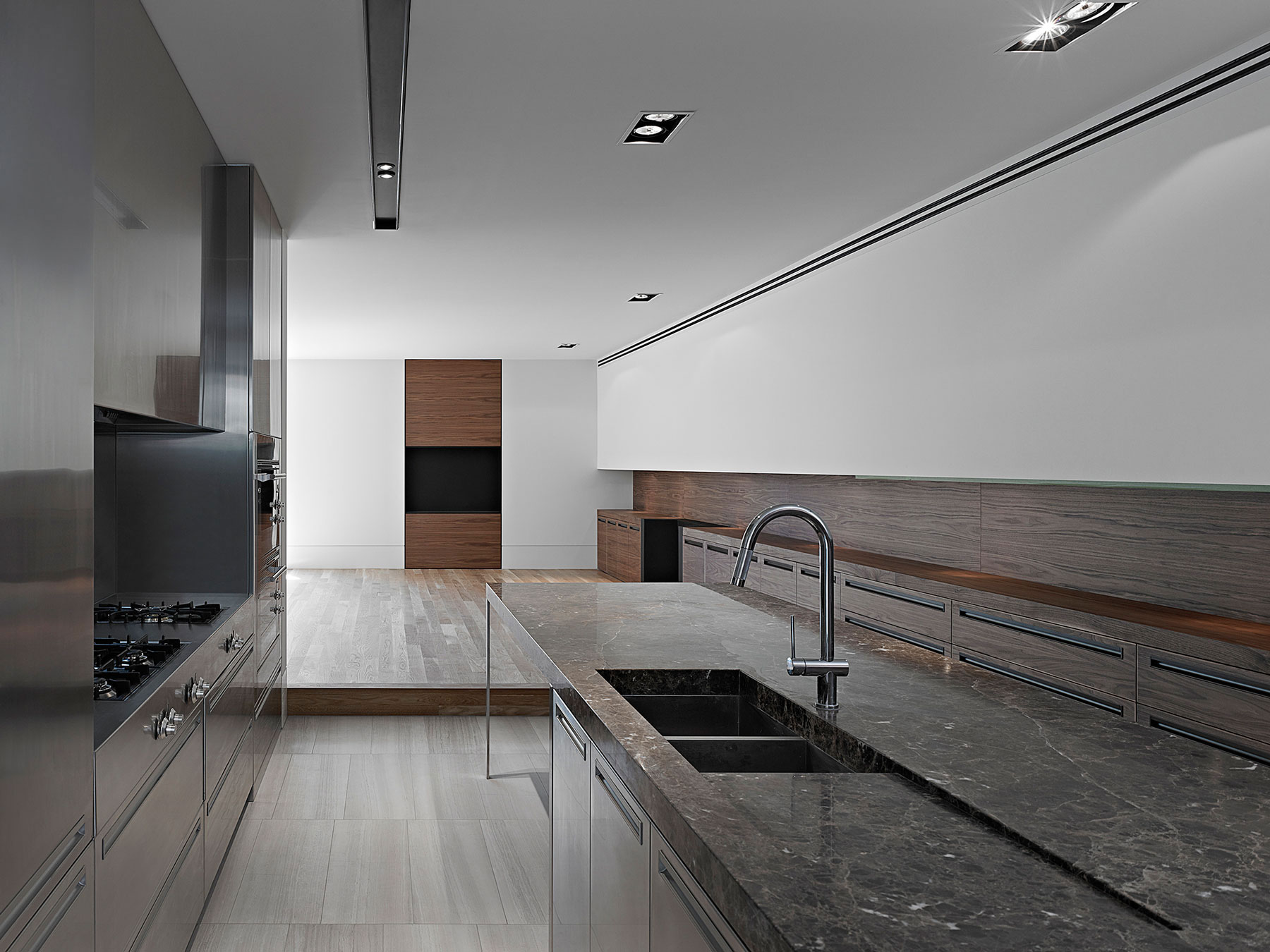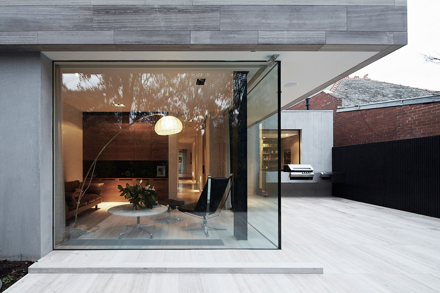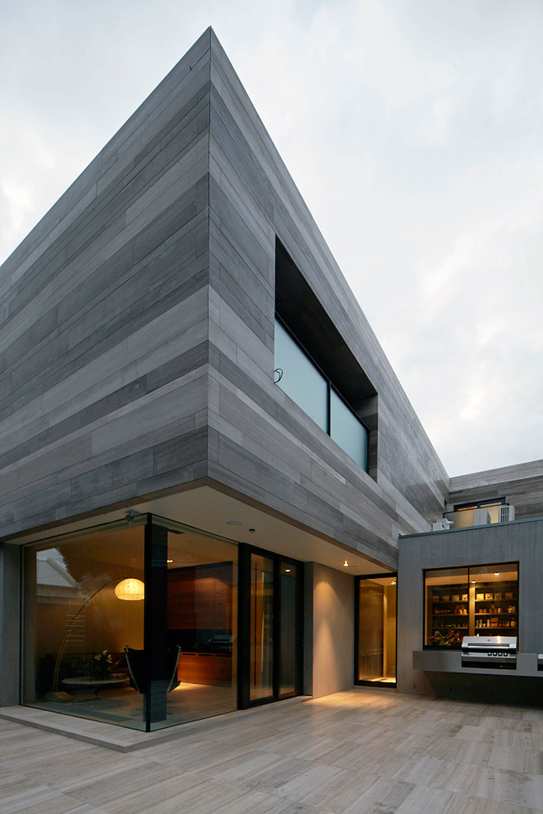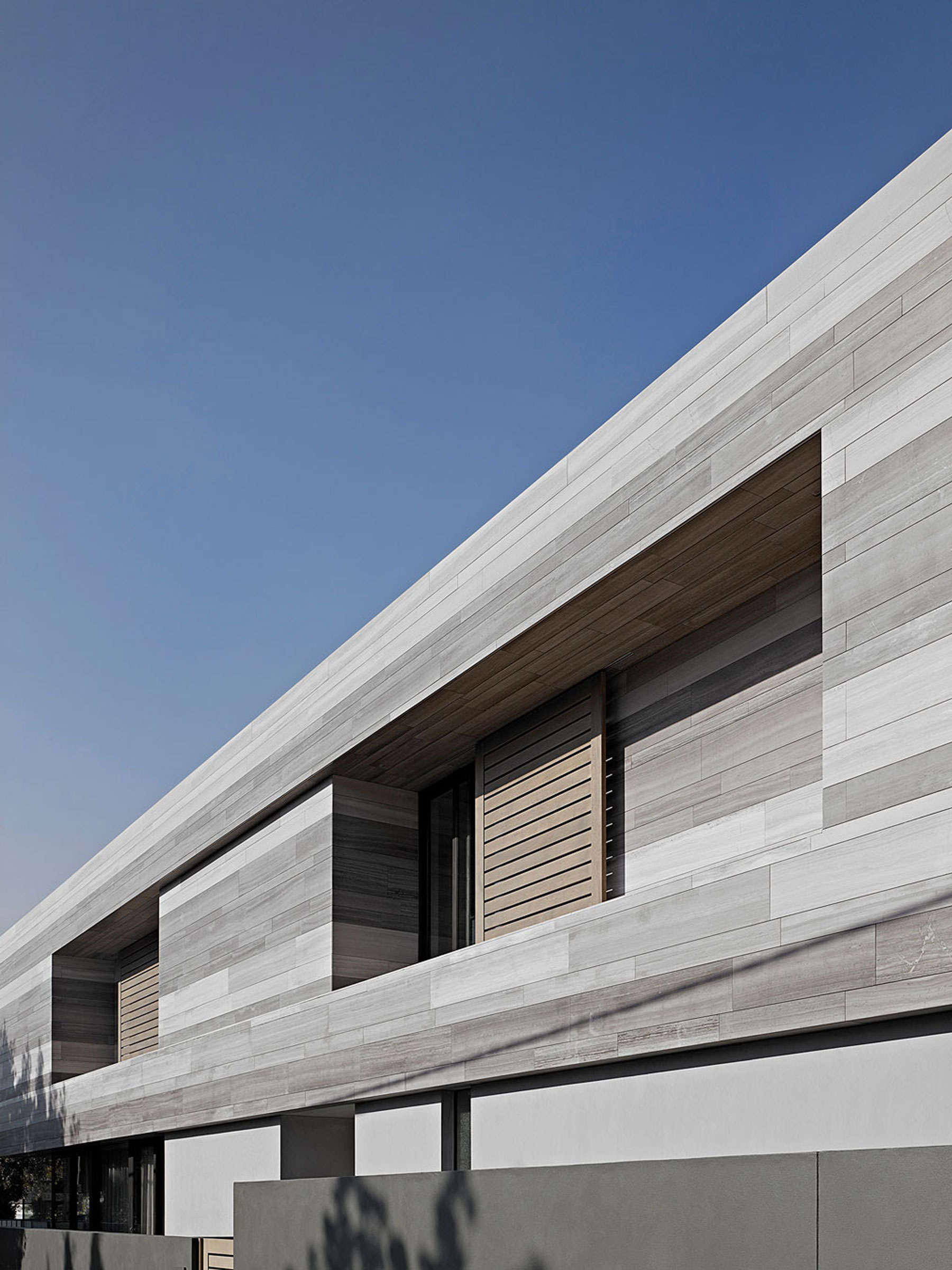 Zvyčajne travertín slúži iba ako obkladový materiál alebo stavebný materiál pre špecifické súčasti obydlia – napríklad schodiská či predely. Architekti z austrálskeho štúdia B.E Architecture sa však rozhodli pre zaujímavý experiment – travertín zabudovali takmer do každej časti priestoru – v exteriéri aj v interiéri.