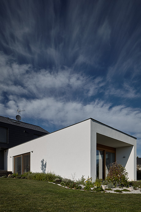 Spolupráca architektov a klienta bola v tomto prípade bezproblémová a všetko šlo hladko. Klient mal totiž jasnú predstavu o funkčnosti svojho domu. „Spoločne sme rýchlo dospeli k základnej orientácii a hmotovému členeniu, prostredníctvom ktorého dom oddeľuje súkromný priestor záhrady od ulice,“ vyjadril sa na adresu príjemnej spolupráce architekt Petr Moráček. Čo bolo najťažšie v rámci plánovania obytného celku? A v čom musel klient plne dôverovať architektom? „Najťažšie bolo nájsť vizuálny výraz domu, keďže sme sa chceli vyhnúť zvyčajnej podobe dvojpodlažného domu prostredníctvom odlišne pôsobiacej prízemnej „prístavby“.