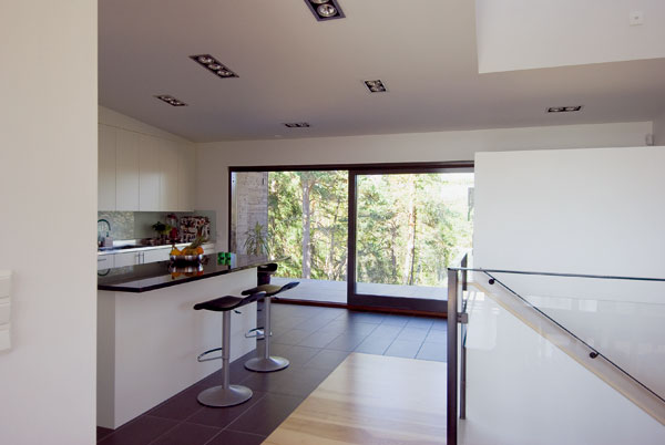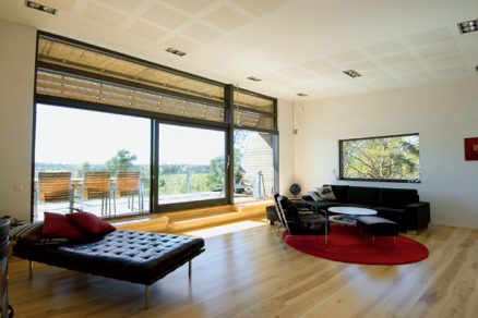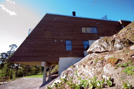 Čím vyniká neveľká vila medzi kvalitnými severskými realizáciami? Predovšetkým tým, že jej koncepcia sa nezačína úsilím splynúť s krajinou, ako kážu klasici, ale k nemu až dospieva. Priznáva fakt, že stavba obydlia je vždy razantným zásahom do prírody. Klinovitým tvarom to ešte viac podčiarkuje – zdola od cesty sa klin v skalnatom kopci sebavedome dvíha nad terén.