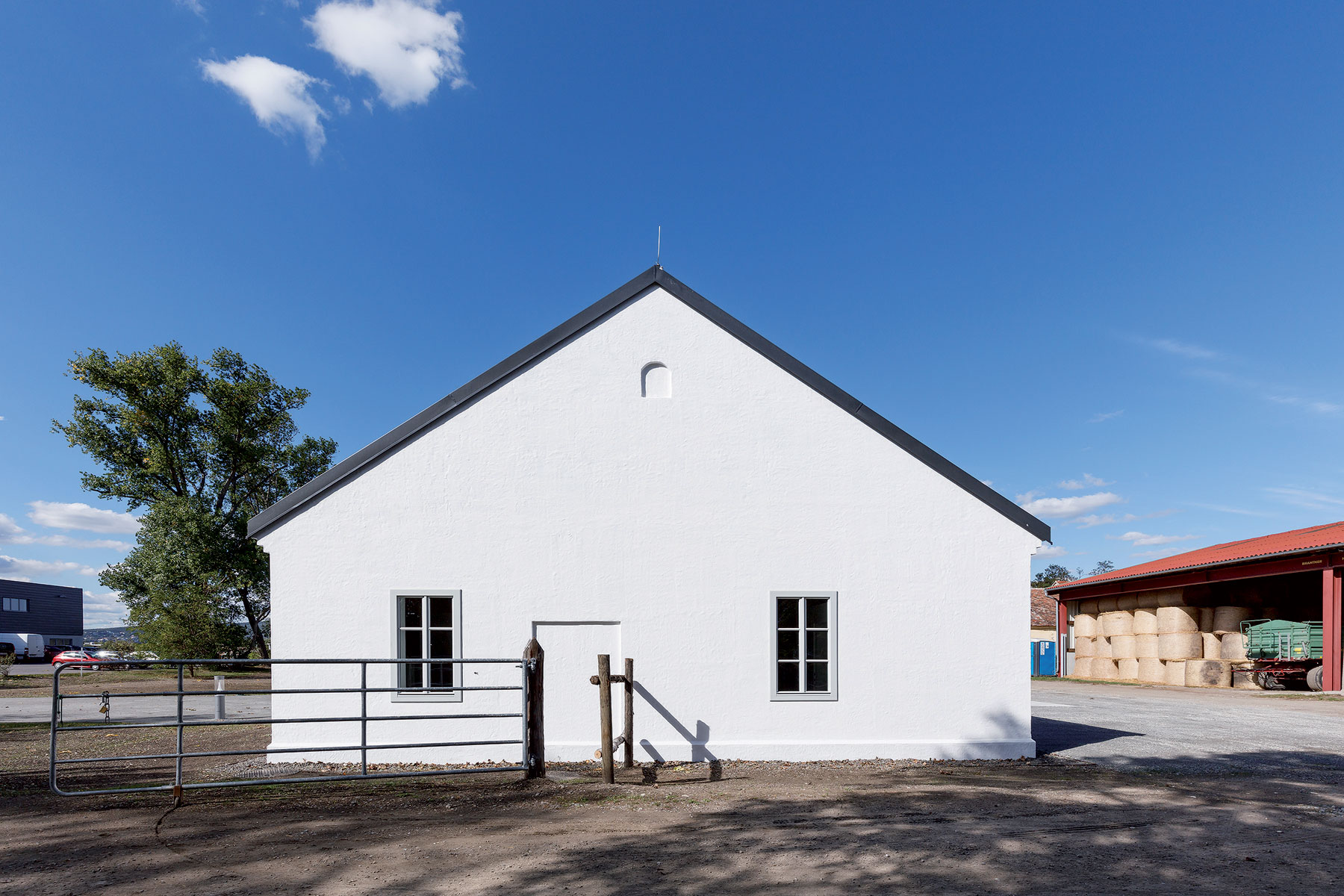 Objekt má jednoduchý tvar s klasickou šikmou strechou a výraznú pozdĺžnu dispozíciu. Architekti odmietli razantný vstup do tvaroslovia a revitalizáciou citlivo sledovali typológiu podobných budov v Burgenlande a zároveň prirodzenú integráciu objektu do okolitého prostredia. Samozrejme, objekt sa „neutopil” v prostredí úplne, o jeho novom spoločenskom využití transparentne informujú biele vonkajšie steny z pieskovcového muriva, ktoré dopĺňa antracitová strecha a sivé šambrány okeníc a dverí. Nič tu nie je navyše, cudzie prvky nerušia dokonalú horizontalitu.