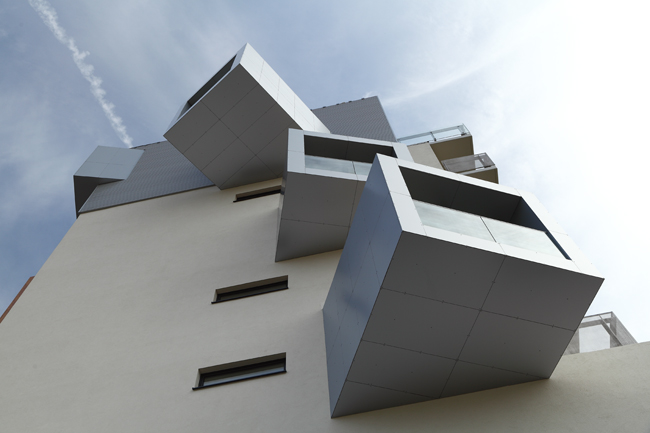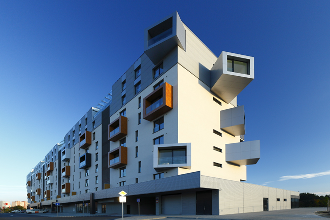 Zvonku sú všetky proporčne vyrovnané a správne nadimenzované. Obal tvorí zaizolovaný originálny alucobondový alebo hliníkový plášť s potlačou s dreveným dezénom alebo v čiernom variante. Zvnútra „kukane“ šikovne rozširujú podlahovú plochu bytov. Tento vtip na fasáde si nachádza čoraz väčšiu obľubu aj v konkurenčných projektoch. Investori vedia, že im to prináša zaujímavú deltu pomeru stavebných nákladov a predajnej ceny za štvorcové metre navyše. Architekti zasa vedia, že mnohokrát opakovaný vtip má opačný účinok, treba ho teda dávkovať s citom. Západná fasáda je v tomto prípade očistená od ďalších prvkov.