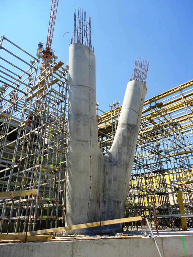 Povyťahované „kukane“ sledujú individuálne výhľadové kužele, ktoré už teraz rešpektujú budúcu výstavbu oproti. Možno vás bude fascinovať aj nápad zahaliť túto stranu do teflónovej membrány. Zatiaľ ho možno vidieť len na vizualizáciách, ale už začína naberať reálne kontúry.
