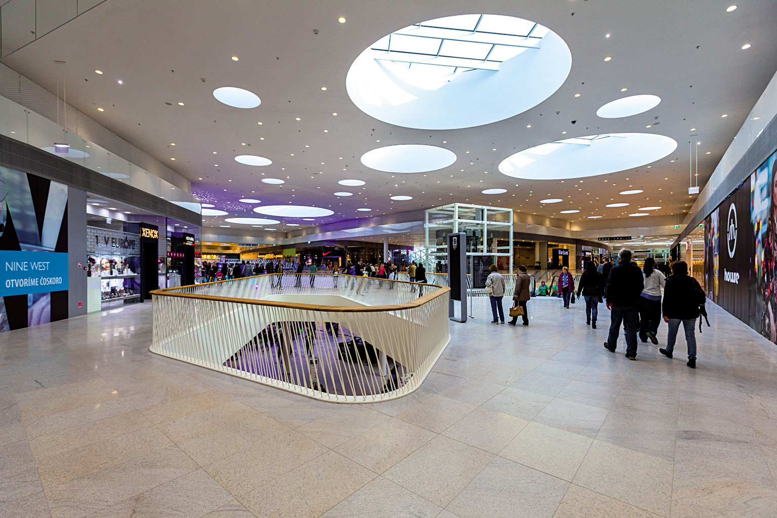 Návrh úplne napĺňal predstavu osvetlenia spoločných priestorov s dojmom výzoru hviezdneho neba. V koncepte sa počítalo s kombináciou dvoch svetelných distribúcií: „wide flood” na stredové zóny a „oval flood” na okraje, kde spoločný priestor prechádza do komerčnej zóny jednotlivých obchodov. Použilo sa neutrálne biele svetlo 4000K na navodenie sviežeho, otvoreného a atraktívnejšieho dojmu z priestoru.