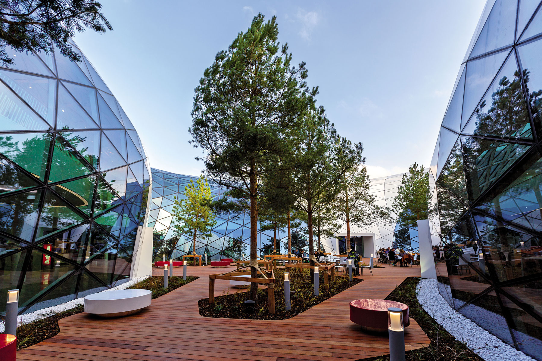 Aj v tomto prípade sa silný investor zaštítil autoritatívnym menom architekta. Talian Massimiliano Fuksas (1944) patrí do prvej ligy svetových architektov, predpokladalo sa, že prinesie „iný“ pohľad na dizajn obchodného centra. Fuksas v podstate nesklamal, aj keď zvonka vyzerá dvojposchodová budova ako všedná škatuľa. Vnútri je to už oveľa lepšie, hoci – ako to architekt potvrdil aj na prezentácii pred médiami – aplikoval svoje overené tvaroslovie použité na nedávnych projektoch v Miláne (Fiera Milano) či vo Frankfurte nad Mohanom (My Zeil, Shopping Mall). Najviditeľnejšie je to pri „tornáde“ – ako sa nazýva zelená zóna v srdci centra v tvare vzdušného víru. Tvorí ho 2 286 trámov, ktoré spája 798 tzv. nodov. Osadených je 901 tabúľ skla a 720 plných panelov. Je to ukážka tzv. parametrickej architektúry, pričom plné a transparentné časti sú umiestnené tak, aby bol food court zatienený pred priamym slnkom. Každý spoj je originálny a žiadna časť nie je identická. Tornádo je zároveň označované za najdrahšiu súčasť centra – stálo 3 milióny eur. „Z obchodného centra som chcel vytvoriť malú mestskú štvrť s vlastnými ulicami a námestiami,“ povedal Fuksas o svojom projekte, ktorého koncept vychádza z osobného poznania Bratislavy. „Bol som tu viackrát a uvedomil som si jej históriu, vzdelanosť, kultúru. Toto mesto som si obľúbil napriek tomu, že ho na viacerých miestach necitlivo rozsekli dopravné tepny. So svojimi námestíčkami, priľahlými kaviarňami či kníhkupectvami mi v mnohom bolo inšpiráciou aj pri projekte Bory Mall.“ Ďalším výrazným motívom Fuksasovho rukopisu sú svetlíky s rôznou veľkosťou v strope, ktoré cez deň výdatne prepúšťajú svetlo a večer evokujú hviezdne nebo nad hlavou.
