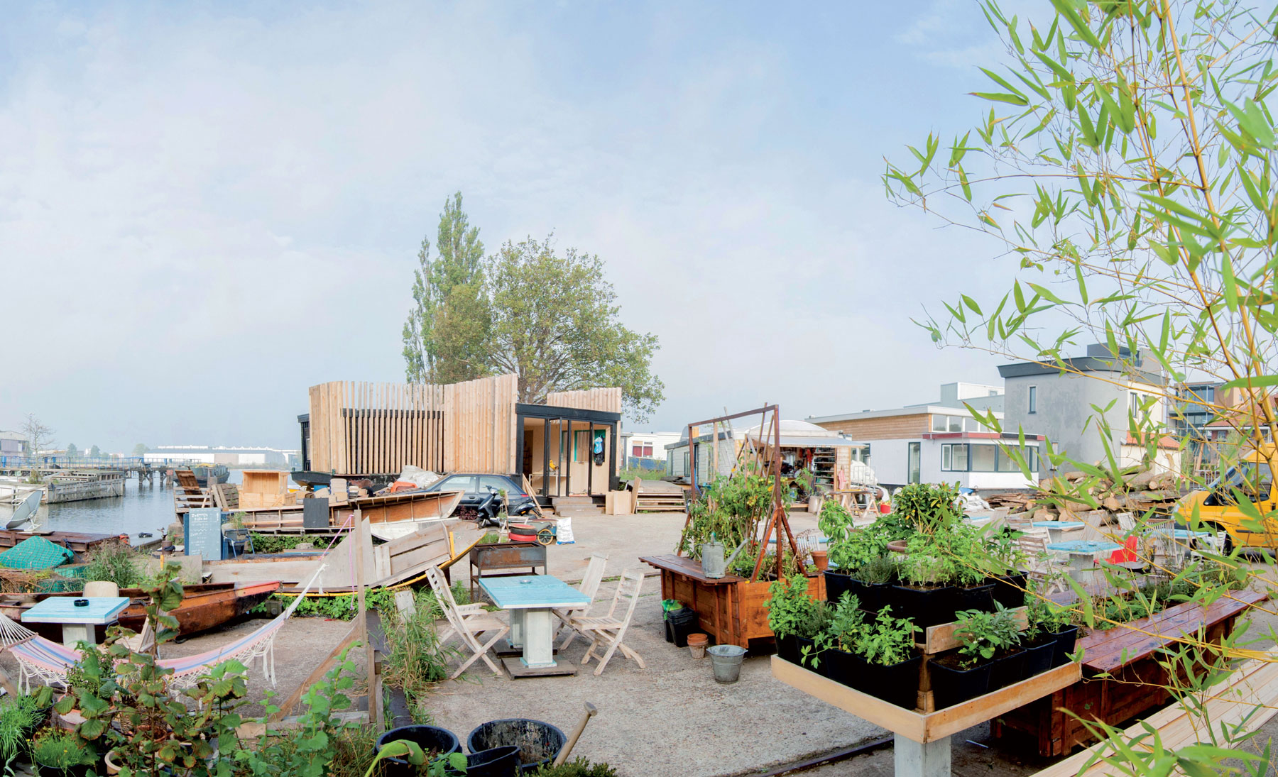 Okrem iného sa dozvieme, že do zvyšného priestoru navrhol ateliér DelvaLandscapeArchitects špeciálne traviny, ktoré čistia zanesenú zeminu. Tento ojedinelý „low-tech“ hausbótový súbor tak zabíja dve muchy jednou ranou – je šetrný k životnému prostrediu a je udržateľný, pretože, ako popísali autori svoj prístup, „… vytvára z odpadkového bývania a odpadkovej zeminy niečo hodnotné…“. Tento projekt pritom priamo nadväzuje na lodiarsku tradíciu.