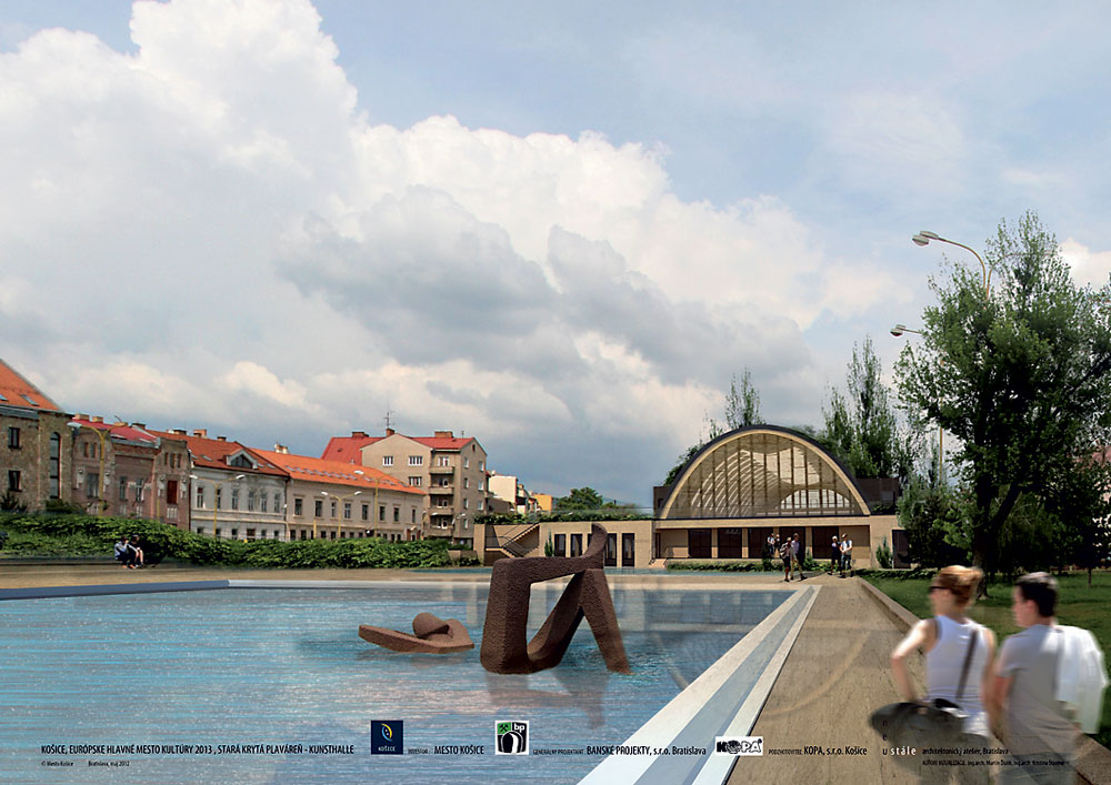 Nemenej ambiciózny je projekt premeny starej krytej plavárne na Kunsthalle. Budovu pravdepodobne staticky narušilo nahradenie mlynského náhonu komunikáciou pred vyše 30 rokmi. Plaváreň už celé roky neslúži svojmu účelu, ale ako jedna z architektonicky najzaujímavejších stavieb v Košiciach by bola skutočne dôstojným a originálnym priestorom s eventuálnou možnosťou využitia vodnej plochy. Plaváreň je, navyše, súčasťou celého športovo rekreačného komplexu v tesnom susedstve mestského parku pri železničnej stanici. Je tam funkčné vonkajšie kúpalisko, bývalý krasokorčuliarsky pavilón, tenisové kurty a napokon aj rozsiahly park, ktorého revitalizácia je tiež aktuálnou otázkou. Realizačná fáza však uviazla na verejnom obstarávaní. Architekt Jerguš k tomu dodáva: „Architekti musia projekt robiť po nociach obrazne povedané „v mihu oka“, stavbári sú tlačení do neuveriteľne krátkych lehôt a naháňajú sa ako zmyslov zbavení, ale právnici so svojimi námietkami k verejnému obstarávaniu majú čas a svoje lehoty.“ Výsledkom je, že vzletná myšlienka multifunkčného centra určeného na výstavy a rôzne exteriérové projekty ostávala dlho len papieri. Rekonštrukčné práce však uprostred leta začali. Kvôli prestavbe ostalo zatvorené aj vedľajšie kúpalisko, takže Košičania sa nových reprezentatívnych výstavných priestorov nevedia dočkať.