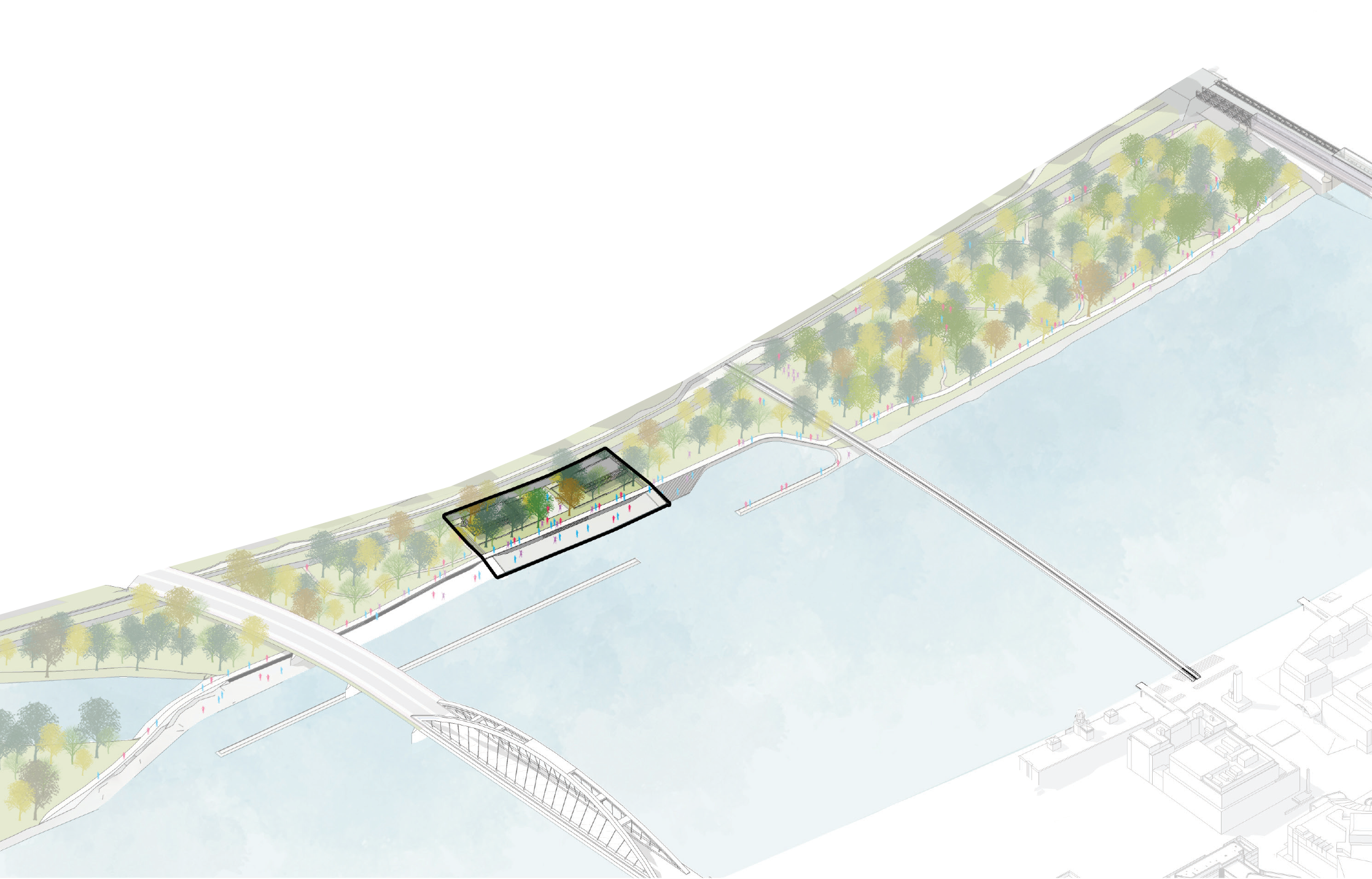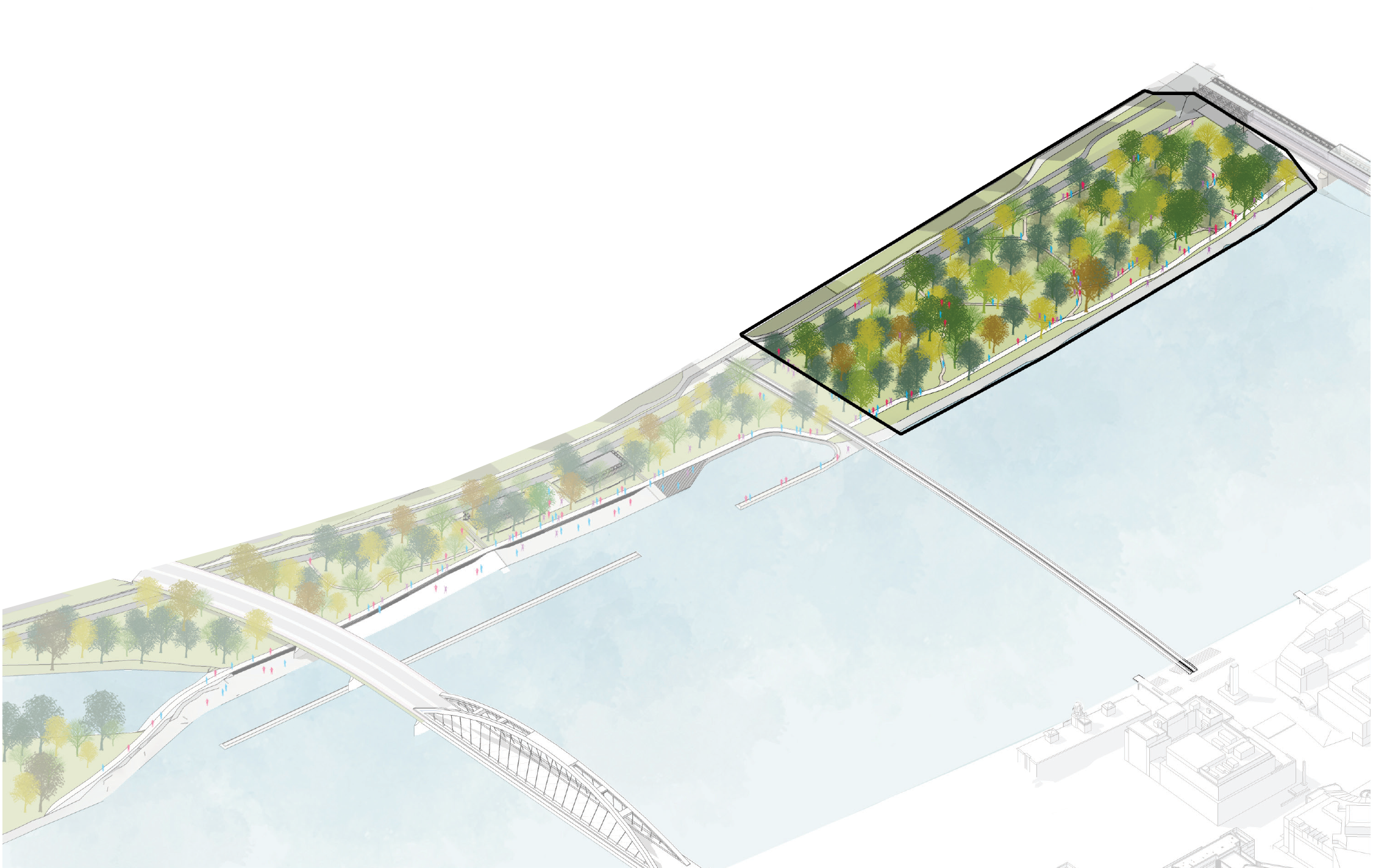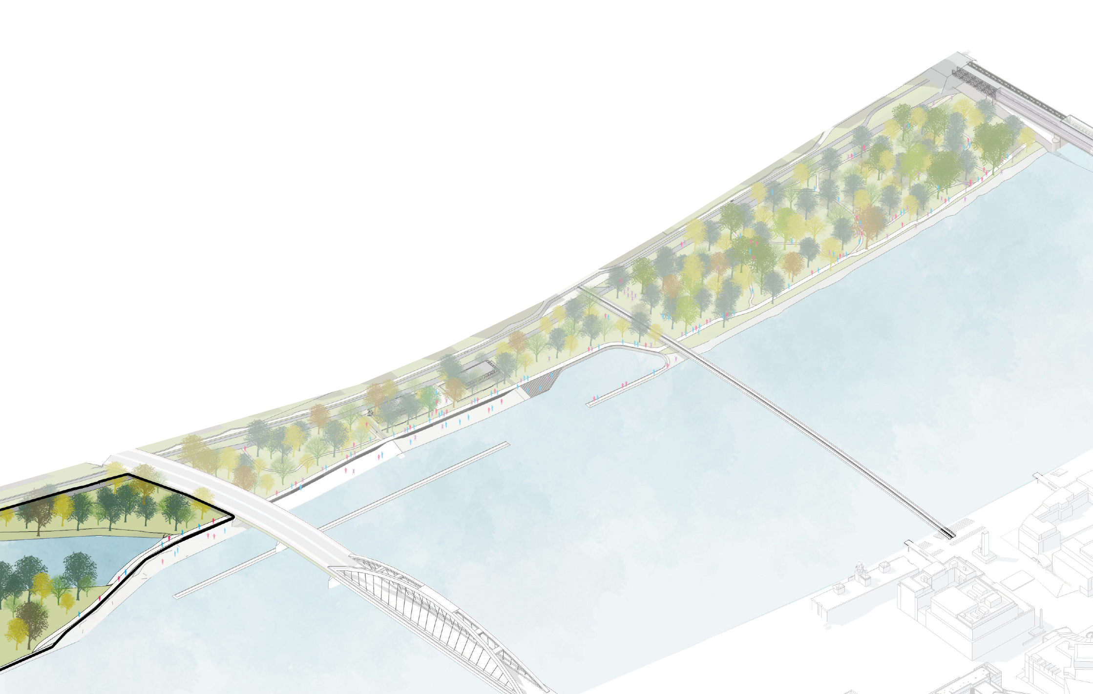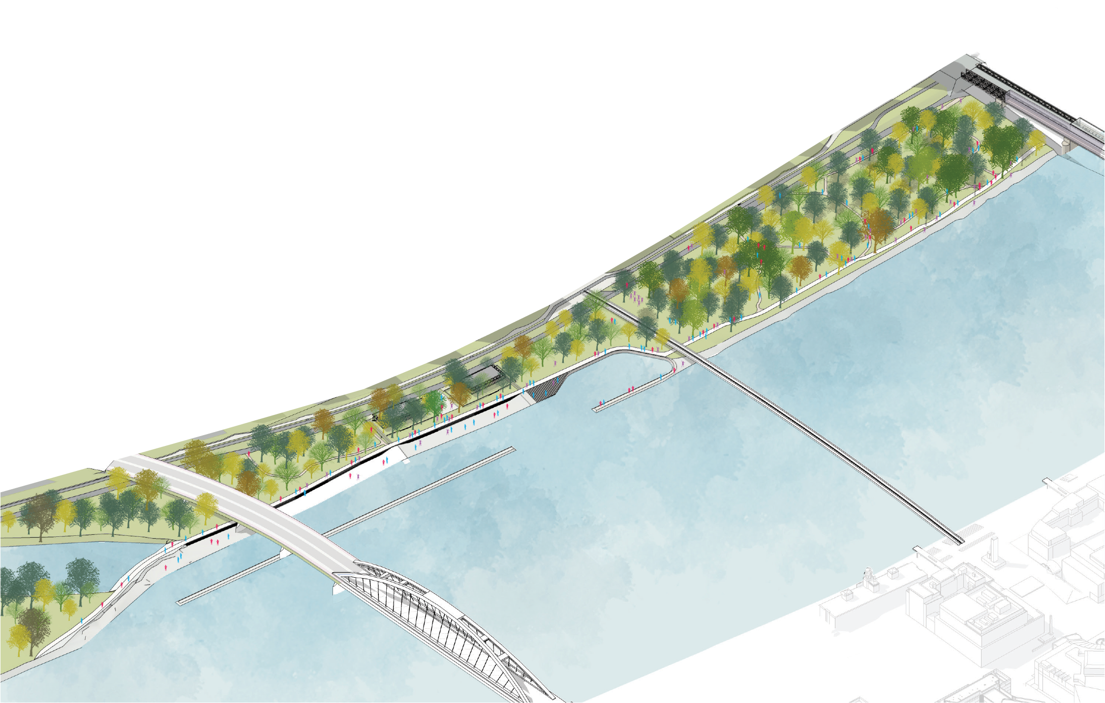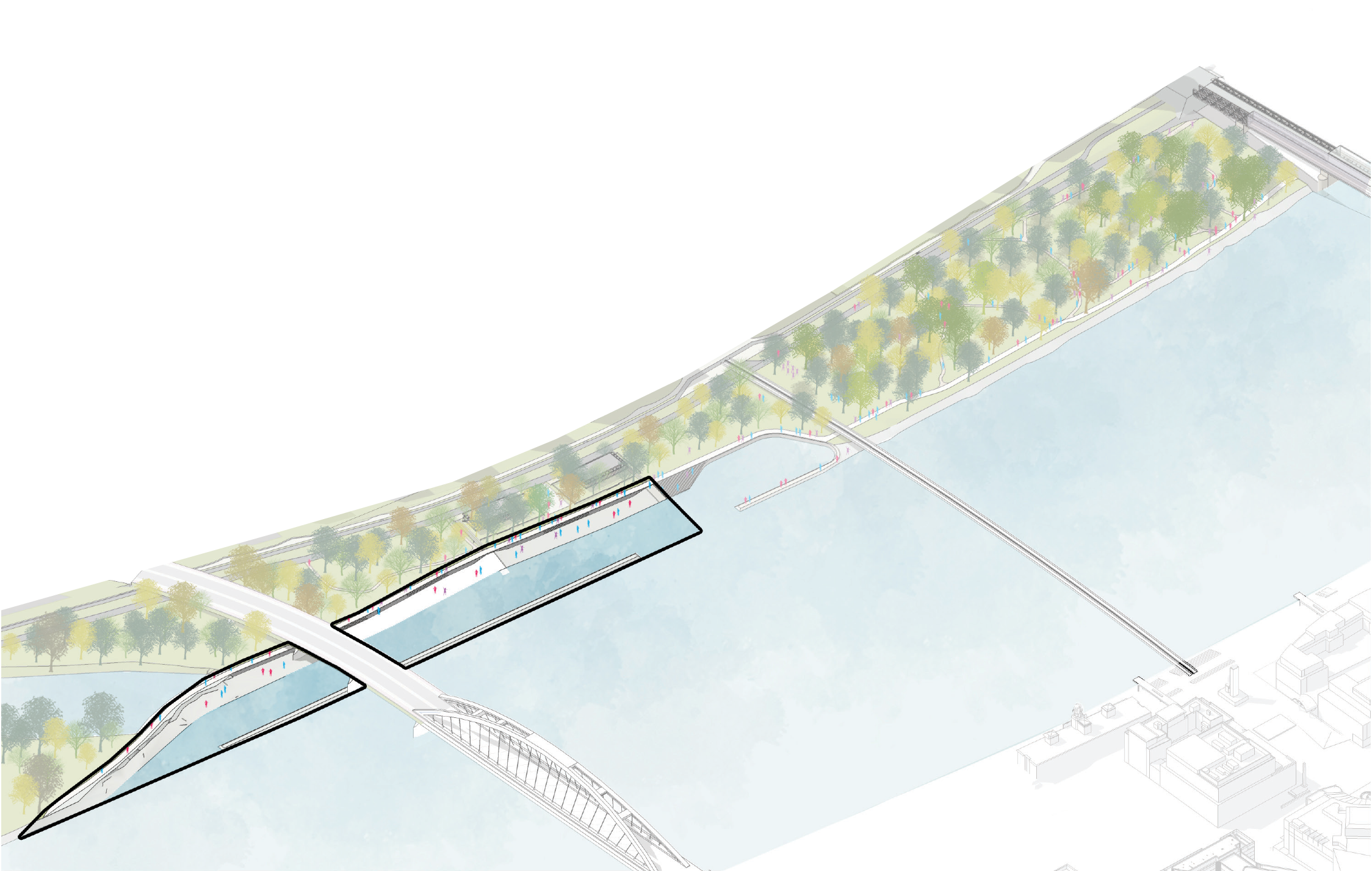 Štúdia odporúča vytvoriť medzi Starým mostom a Prístavným mostom verejnú pláž, promenádu a prírodný park. Na pravom brehu Dunaja, medzi Starým mostom a dnešným Prístavným mostom, sa kedysi rozkladala už zaniknutá verejná pláž Lido. Bolo to obľúbené výletné miesto Bratislavčanov, kde sa dalo plávať aj priamo v Dunaji.