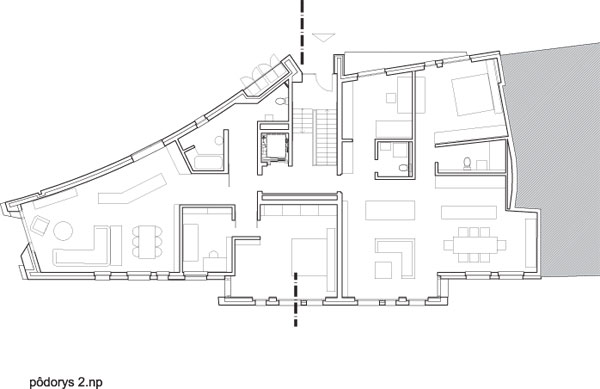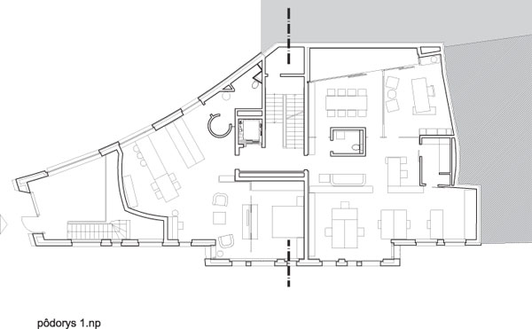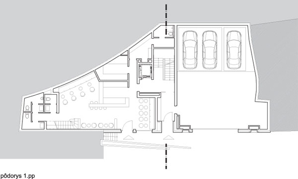 Investor, tiež úspešný architekt, sa do úpravy projektu pustil sám tak, že z Beblavého ulice je objekt osadený na skutočnom teréne, a vstup zo zadnej strany tiež, avšak už s opravenými kótami, ktoré poskočili o 2,5 m, inak by sa musel vstup do domu zakopať pod úroveň terénu. Prípadné riešenie prístupu do objektu či osvetlenie miestností pomocou anglických dvorčekov by si vynútilo odkúpenie časti susedného pozemku na ich vybudovanie, čo by pre investora predstavovalo ďalšie vynútené náklady.
