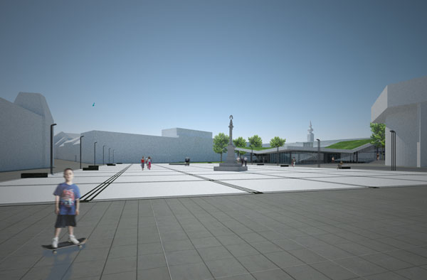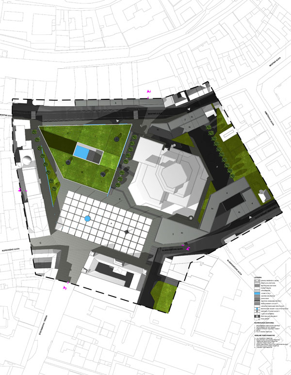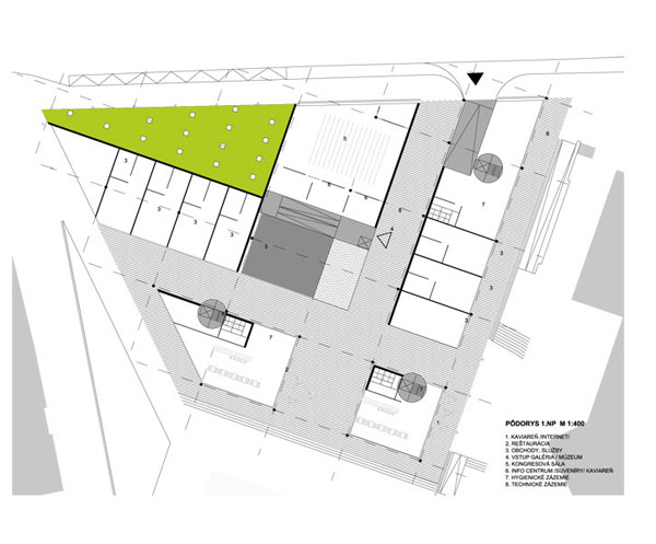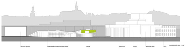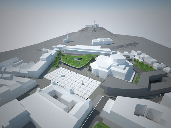 Architektúra navrhovaného centra predstavuje trojrozmerný priestor, ktorý sa len zľahka dotýka zeme. Jednoduchá, moderná, vzrušujúca, unikátna. Výškovo osadená tak, aby uzatvárala priestor námestia, ale nezakrývala panorámu historického mesta. Ide o architektúru či skôr skulptúru určenú ľuďom a pre ľudí otvorenú. Interiér a exteriér je v rovnováhe. Priestory so súkromím a verejné priestory. Architektúra, ktorá pozýva ľudí dnu. Architektúra s výhľadmi.