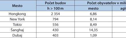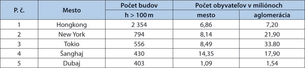 Tab. 5: Mestá s budovami vyššími ako 100 m (odhad pre r. 2010)