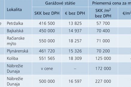 Priemerné ceny bytov za štvorcový meter vo vybraných bratislavských projektoch