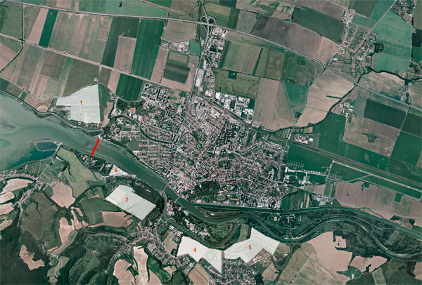 1 – lokalita pre výstavbu lifestylového rezortu, 2 – lokalita Červená veža, 3 – plánované premostenie Váhu, 4 – lokalita pre bytovú a rekreačnú výstavbu, 5 – lokalita pre výstavbu rekreačného rezortu saudskoarabským investorom, 6 – rozvojová lokalita pri kúpalisku Sĺňava