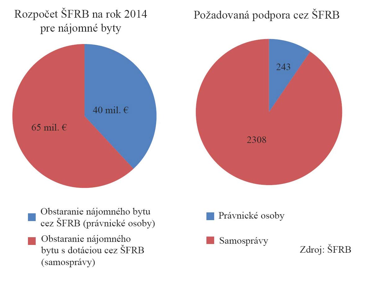 Aj Ing. arch. Elena Szolgayová, ktorá sa na MDVRR dlhodobo zaoberá bytovou politikou, uviedla na konferencii Stavebné fórum (november 2013), že nájomné bývanie patrí medzi priority štátnej bytovej politiky. Za ekonomický nástroj podpory rozvoja bývania uviedla aj úver zo Štátneho fondu rozvoja bývania (ŠFRB), ktorý financuje výstavbu až 99 % nájomných bytov na Slovensku. ŠFRB posudzuje, či žiadosti spĺňajú podmienky na poskytnutie podpory, a v prípade vyhovujúcich žiadostí poskytne finančnú podporu, čo nie je založené na spolupráci s investormi. „Na obstaranie nájomných bytov bolo na ŠFRB zatiaľ doručených 180 žiadostí miest a obcí a 6 žiadostí od podnikateľov,“ odpovedá hovorca ŠFRB Rastislav Lackovič na otázku záujmu o tento druh úveru a pokračuje, „existujú dve formy podpory a financovania z fondu – buď ide o sociálne bývanie, alebo bývanie pre marginalizované skupiny obyvateľov. Treba upozorniť, že sociálne bývanie financované ŠFRB je veľmi kvalitné bývanie do 80 štvorcových metrov obytnej plochy bytu.“ V minulom roku bol novelizovaný zákon o ŠFRB, ktorý od 1. 1. 2014 umožňuje aj podnikateľom čerpať úvery z fondu a financovať výstavbu nájomných bytov. Množstvo stavebných firiem, čo sa zaoberajú výstavbou nájomných bytov, novinku víta. Podmienky sú už známe. Ako potvrdil M. Kóňa, posudzovať budú najmä schopnosť splácať úver, plnenie záväzkov voči Sociálnej poisťovni či zdravotníckym poisťovniam. Samospráva môže financovať obstaranie nájomného bytu kúpou alebo výstavbou kombináciou úveru a dotácie. Pomer úveru a dotácie závisí od rozlohy bytu, oprávnených nákladov a štandardu bytu. Výška dotácie z MDVRR SR je 30 až 75 %. Zvyšok obstarávacej ceny je úver zo ŠFRB s úrokovou sadzbou 1 % na 40 rokov. Pre právnické osoby a neziskové organizácie je možné získať úver zo ŠFRB na obstaranie nájomného bytu kúpou alebo výstavbou s úrokovou sadzbou 1 % na 30 rokov vo výške max. 80 % z obstarávacej ceny (bez dotácie MDVRR SR), stavbu si musia dofinancovať z vlastných zdrojov. V roku 2014 je v rozpočte ŠFRB na výstavbu a kúpu nájomných bytov vyčlenených 105 mil. €, z toho 65 mil. € na projekty nájomných bytov financovaných spolu s dotáciou (dotácia je možná len pre samosprávy, nie je určená pre právnické osoby a podnikateľov). Pre právnické osoby bolo vyčlenených 40 mil. €. Druhou formou je financovanie nájomného bývania zo súkromného sektora. Významnú rolu môžu zohrávať dôchodkové správcovské spoločnosti, stavebné sporiteľne alebo komerčné banky. „Aby však boli občania schopní takéto nájomné bývanie využívať pri migrácii za prácou alebo ako štartovacie byty pre mladé rodiny, je nevyhnutné, aby investíciu do takýchto domov podporoval štát,“ zdôrazňuje Imrich Béreš. „Súkromný investor totiž do takejto investície nepôjde, ak bude návratnosť príliš dlhá. Optimálna je do 10 rokov, čo sa pri súčasnom priemernom príjme obyvateľstva a pri cenových reláciách bytov, z ktorých by sa odvíjalo nájomné, dosiahnuť nedá.“