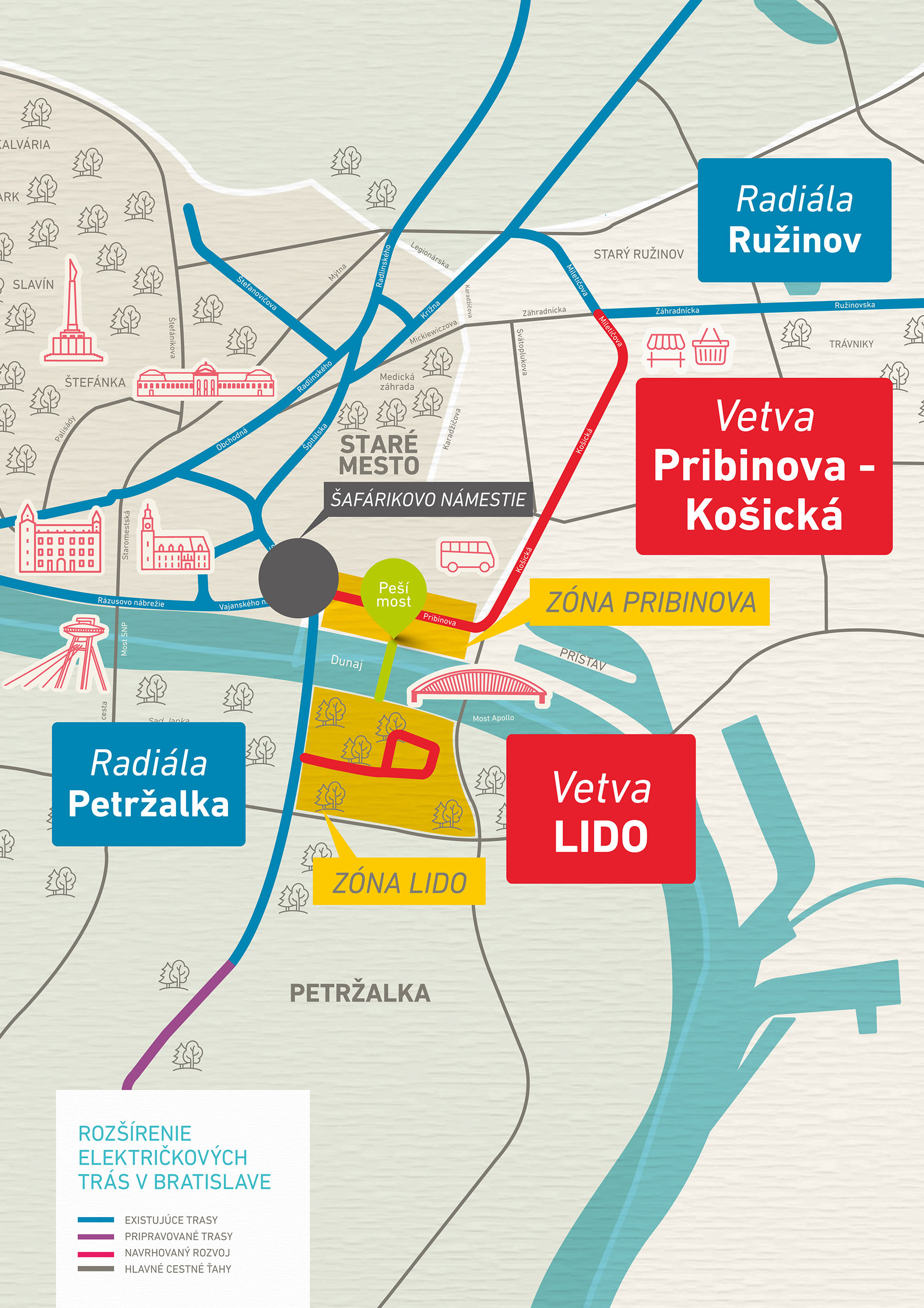Spoločnosť je pripravená financovať vybudovanie električky v zóne Nové Lido a po diskusii s kompetentnými významne prispieť tiež na vybudovanie prepojenia trasy Šafárikovo námestie – Pribinova – Košická – Ružinov.