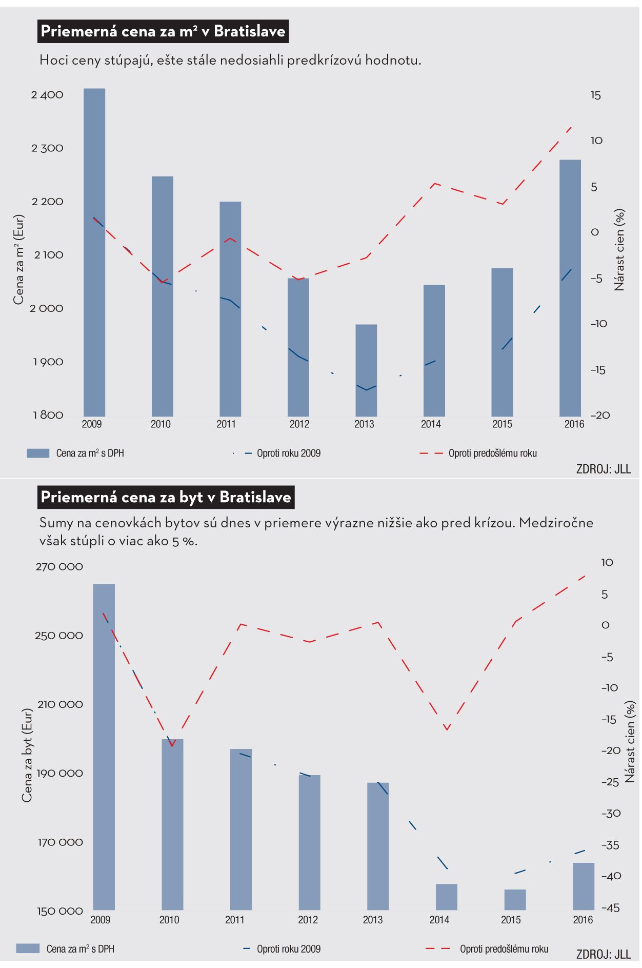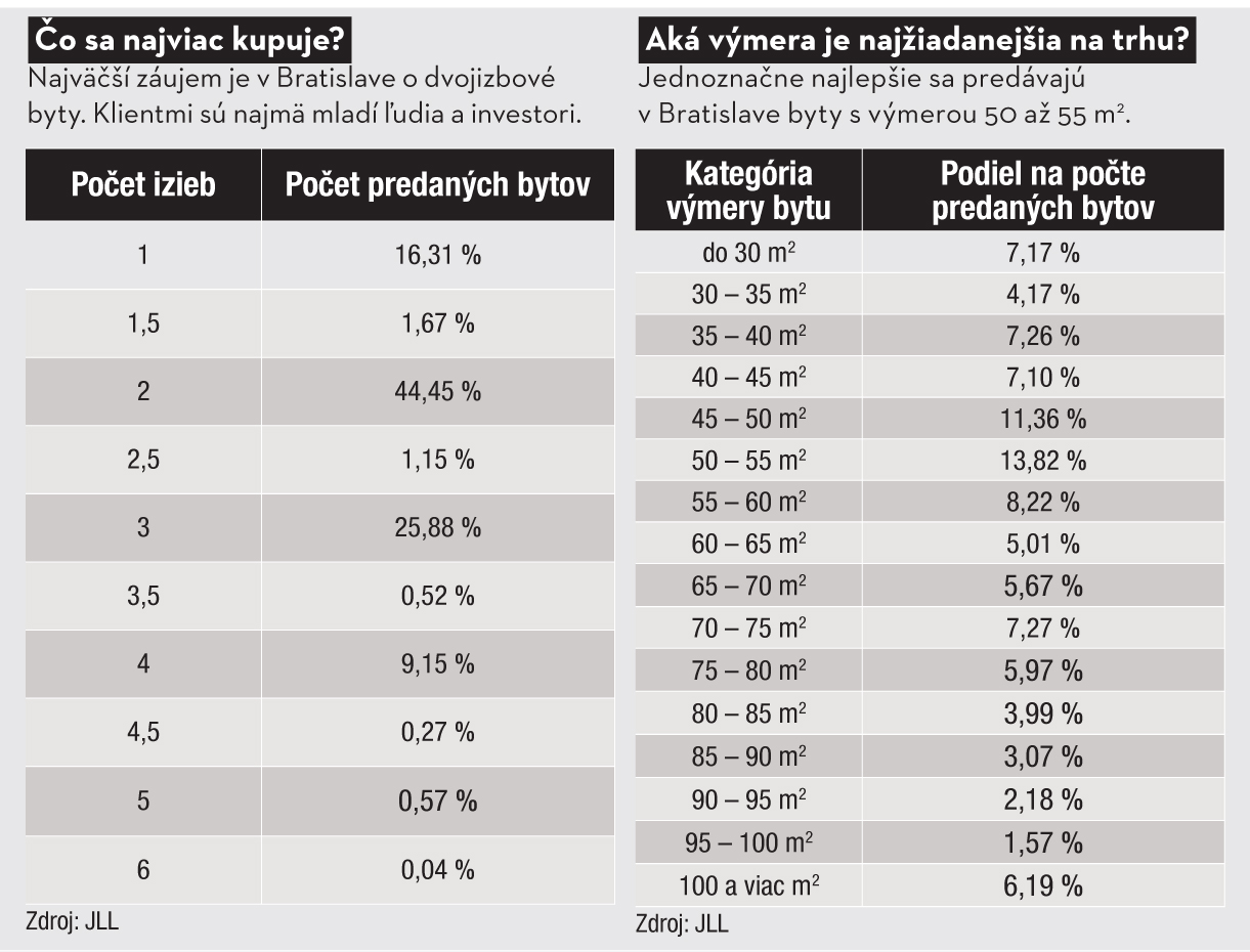 „Uplynulý rok bol plný emócií a rýchlych nákupov,“ hovorí Ján Bošácky, senior analytik spoločnosti Jones Lang LaSalle. Predalo sa najviac bytov v pokrízovom období. Pridáva aj čísla: „Množstvo prevyšujúce 4 000 bytov na začiatku roka 2016 narástlo na takmer 5 500 bytov na konci roka. Čo sa týka zloženia bytov, situácia sa výrazne nezmenila.