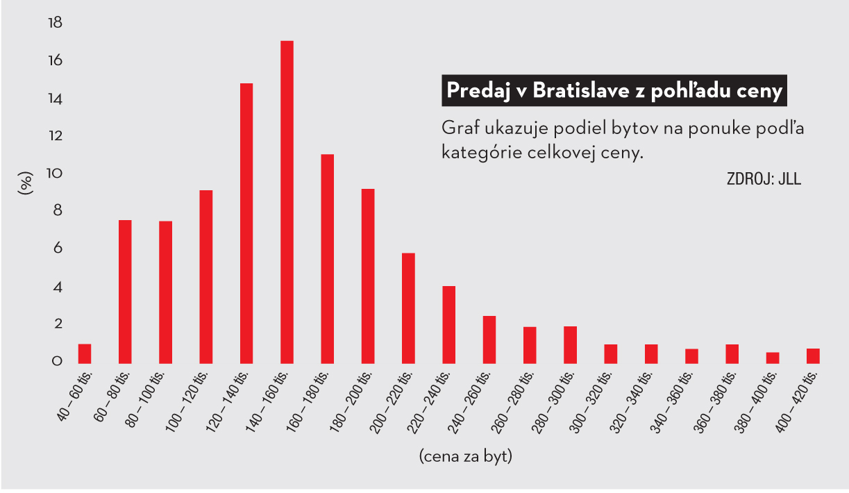Podľa analýz JLL sa v horizonte najbližších troch rokov môže dostať na bratislavský trh ďalších 11 000 až 13 000 bytov. Je to približne rovnaký počet, ako bol v novostavbách dokončený za posledných päť rokov (10 000 až 12 000 bytov), pričom pohľad na posledných 10 rokov hovorí až o počte 27 000 – 30 000 bytov.