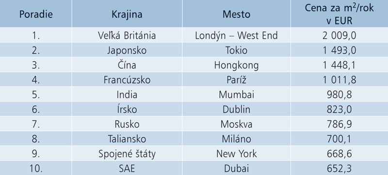 Bratislava je v stredoeurópskom regióne, pokiaľ ide o ceny prenájmov administratívnych priestorov, stále najlacnejšia. Radí sa však úspešne ku krajinám s najprogresívnejším rastom cien. V ich rebríčku sa za ostatné dva roky prepracovala dokonca do prvej desiatky. Vďačí za to príchodu zahraničných investorov a spoločností. Tie majú vyššie nároky na kvalitu priestorov a sú, samozrejme, aj schopné zaplatiť viac ako našinec.