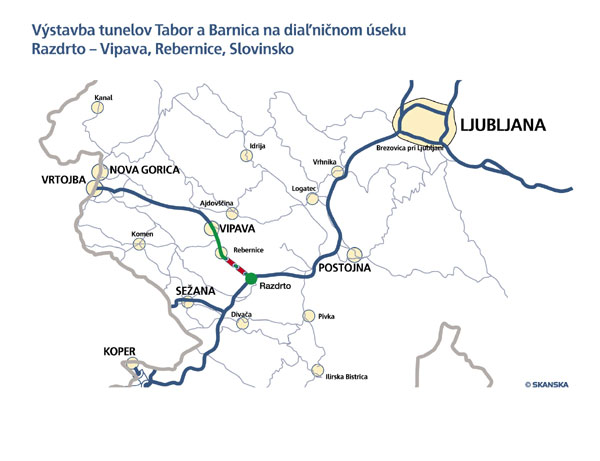 Prievidzskí tunelári začali pracovať na výstavbe slovinských tunelov Tabor a Barnica, ktoré sa nachádzajú asi 70 kilometrov juhozápadne od Ľubľany. Projekt s plánovaným objemom stavebných nákladov viac ako 1 miliarda Sk, na ktorom sa podieľajú stavbári firmy Skanska BS, zahrňuje výstavbu dvoch tunelov a riadiaceho centra. Predpokladaný termín ukončenia stavebnej časti je marec 2008.