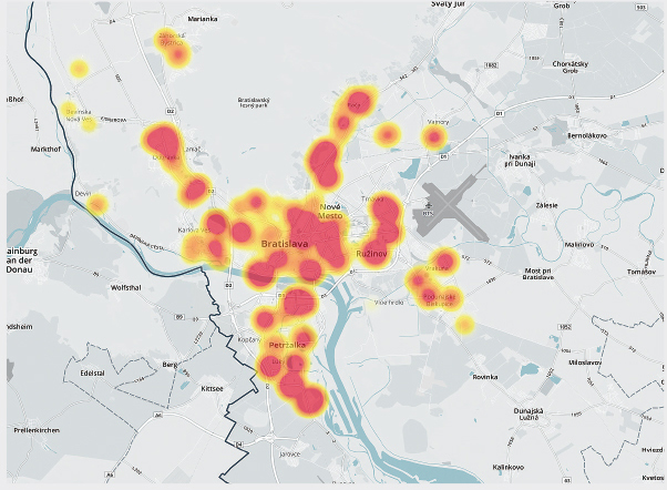 Clusterové zobrazenie ukazuje predajnosť bytov v novostavbách v Bratislave.