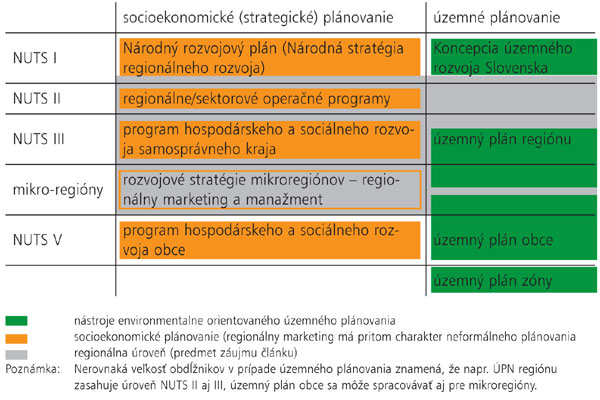 Tab.: Nástroje plánovania v sústavách socioekonomického a územného plánovania