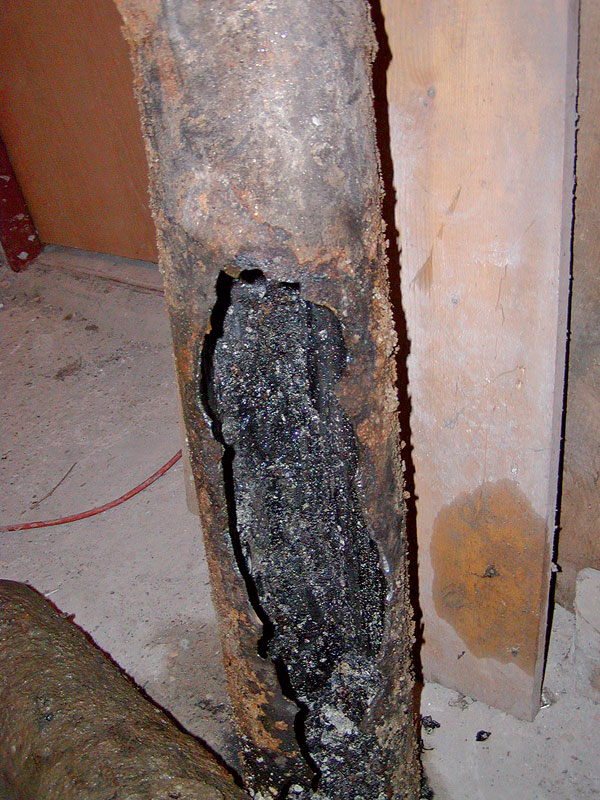 Staršie kanalizačné potrubia sú buď liatinové, alebo azbestocementové. Liatinové potrubia majú životnosť až 50 rokov a prakticky nehrdzavejú. Sú však krehké, a ak sú dlhšie pod tlakom, praskajú. Obrovský tlak na potrubie môže vznikať pre sadanie bytového domu počas jeho životného cyklu. Preto sa odporúča liatinové potrubia pravidelne kontrolovať, a ak treba, zabezpečiť ich výmenu ešte pred uplynutím životnosti. Azbestocementové potrubia sú ešte krehkejšie ako liatinové a praskajú omnoho častejšie. Azbestocementové kanalizačné potrubia, ktoré sa nachádzajú v bytových domoch, sú väčšinou staršie ako 30 rokov a pravdepodobnosť ich prasknutia je vysoká. Keďže azbestové vlákna, ktoré sa v týchto potrubiach nachádzajú, sú karcinogénne, mali by sa čo najskôr vymeniť. Výmenu musí zo zákona realizovať špecializovaná firma, ktorá má na odstraňovanie azbestových materiálov oprávnenie.